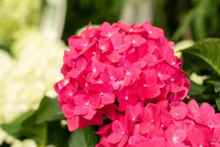 The Common hydrangea 'Summer Love'® (Hydrangea macrophylla) is an upright, dense small shrub that produces pink, cupped flowers arranged in umbels. They appear from May to October. The Common hydrangea 'Summer Love'® also has egg-shaped, medium-green leaves. In a semi-shady to shady location with humus-rich, weakly acidic soil, it usually reaches a height of approx. 2 m and grows to a width of approx. 80 cm.