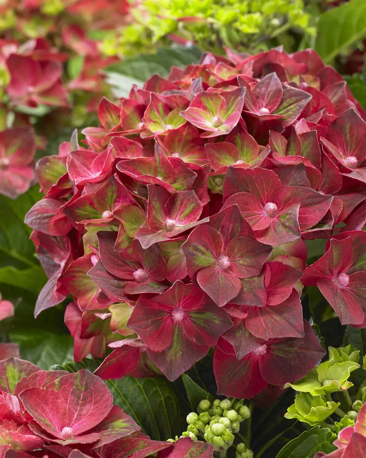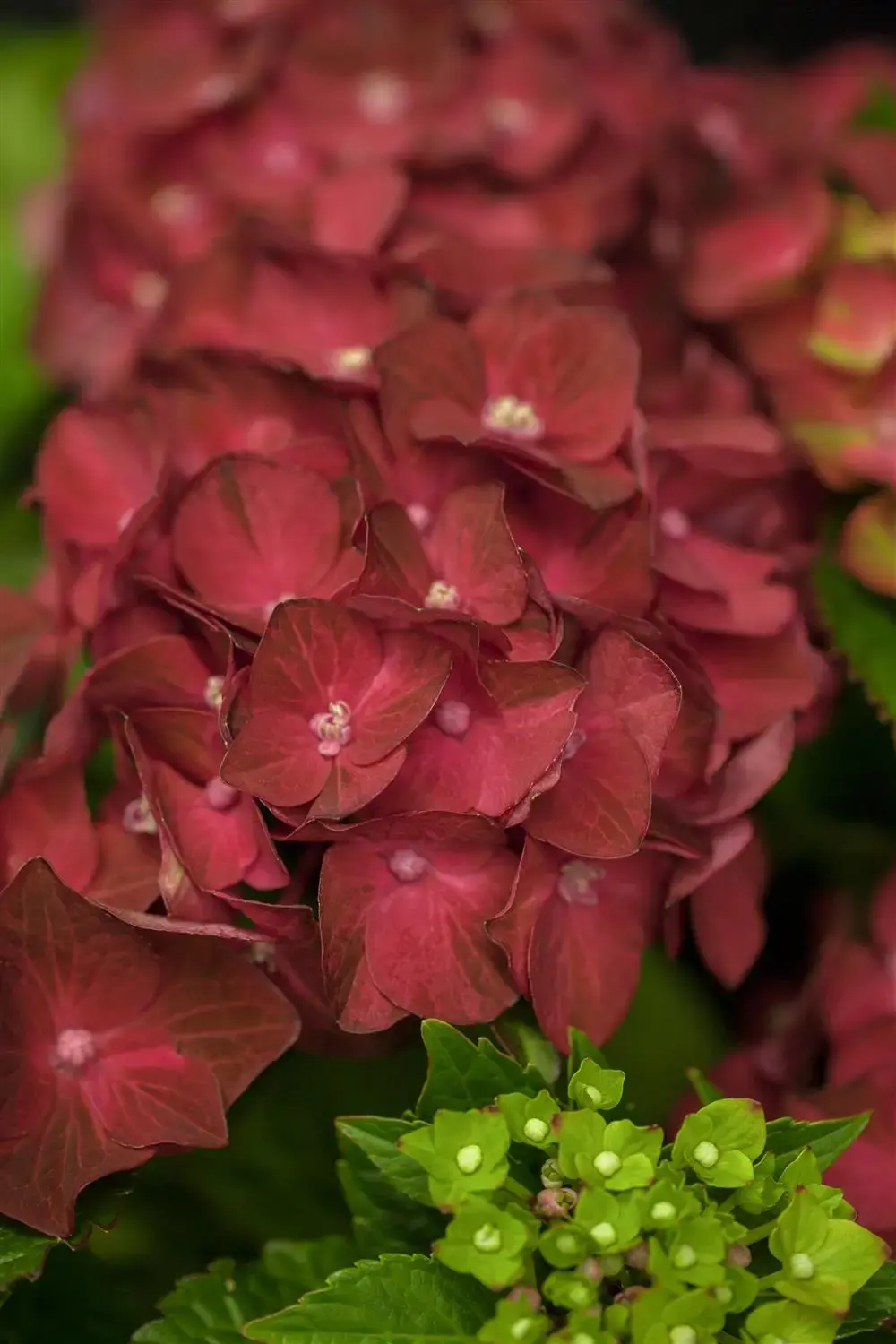Common hydrangea 'Magical Ruby Tuesday'® is bushy and upright in structure.