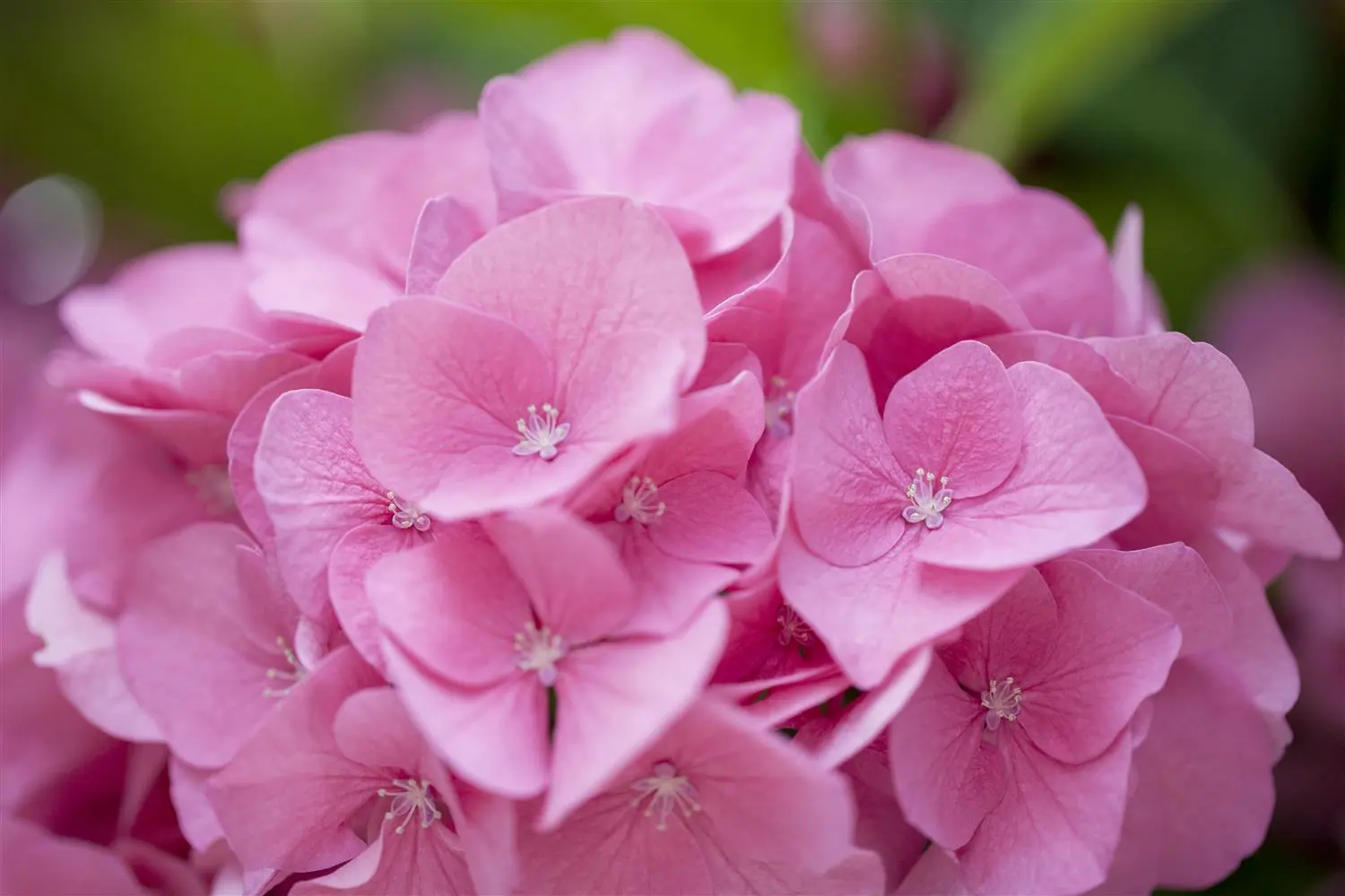 The Common hydrangea 'Rosita' (Hydrangea macrophylla) is a bushy, upright small shrub that produces pink-coloured, cupped flowers arranged in umbels. They appear from June to September. The Common hydrangea 'Rosita' also has egg-shaped, medium-green leaves. In a semi-shady to shady location with humus-rich, weakly acidic soil, it usually reaches a height of approx. 1.5 metres and grows to a width of approx. 1.5 metres.