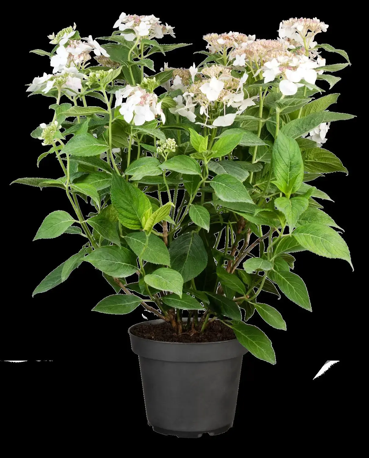 Common hydrangea 'Lanarth White' is bushy and upright in structure.
