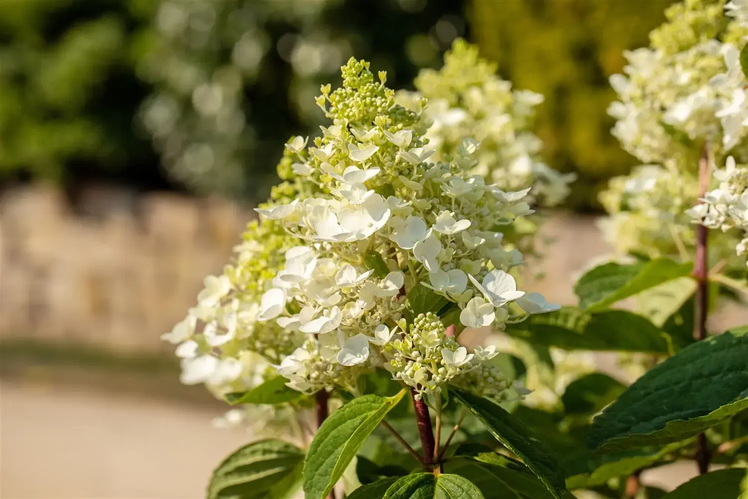 The creamy white flowers of the Paniculate hydrangea 'Baby Lace' appear in panicles from July to September. They are pleasantly fragrant.