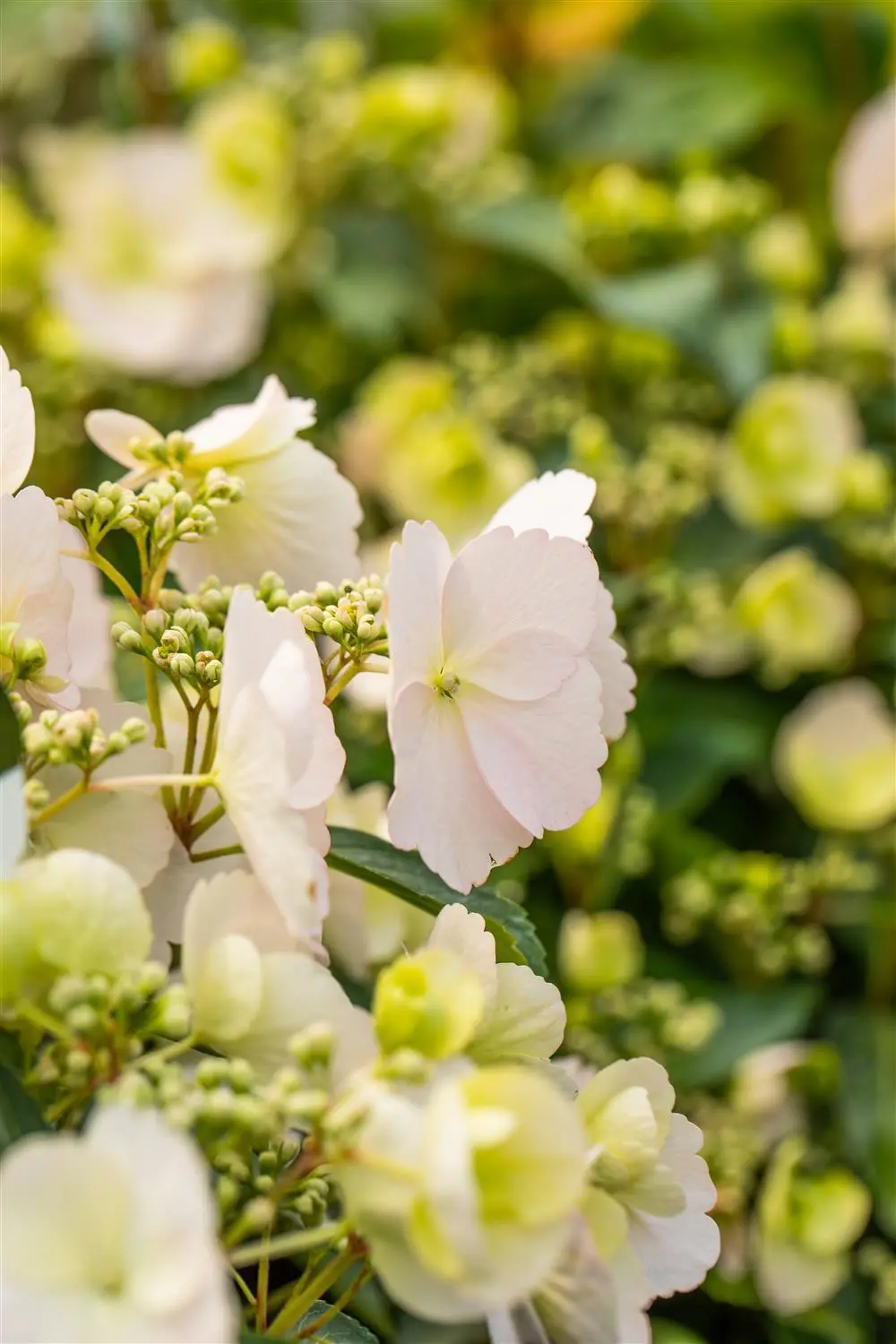 Common hydrangea 'Runaway Bride'® is a bushy and upright growing small shrub. It usually reaches a height of 50 - 60 cm and is approx. 0.8 - 1 m wide. It usually grows 15 - 50 cm per year.