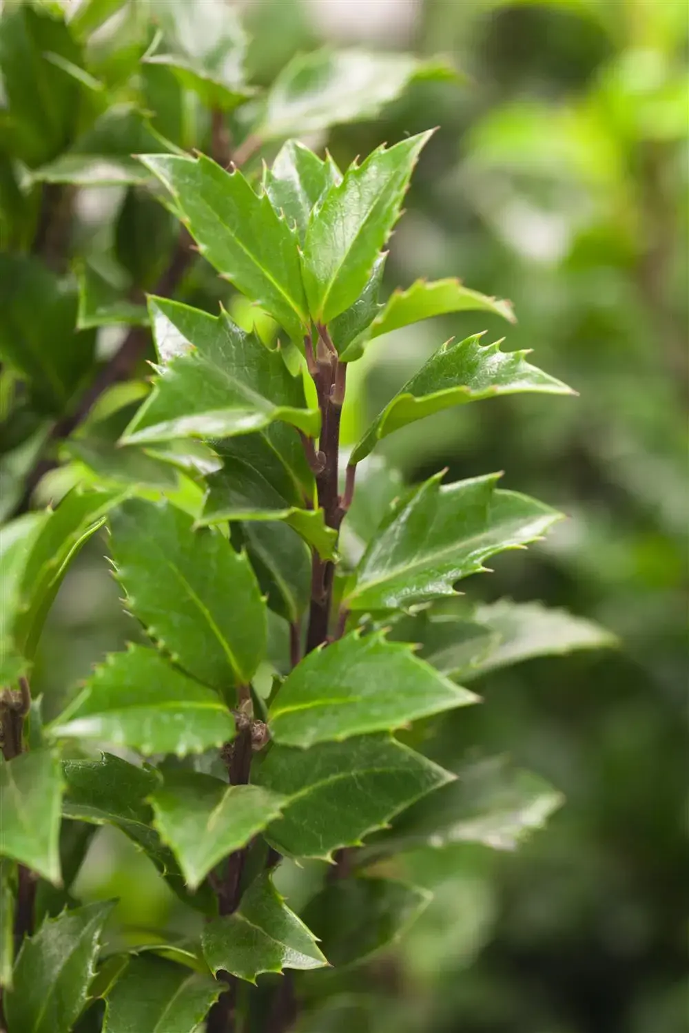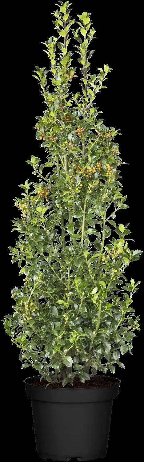 Ilex meserveae can reach a height of 3 - 4 m and a width of 1.5 - 3 m.