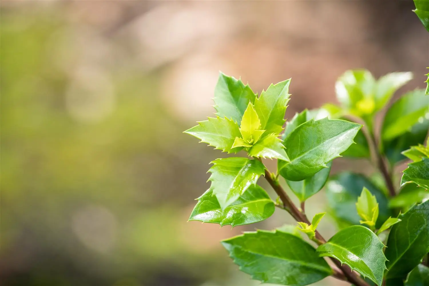 The Blue holly (Ilex meserveae) is a garden plant with decorative, red fruits. The Blue holly also has lanceolate, dark green leaves. In a sunny to semi-shady location with well-drained, nutrient-rich, weakly acidic soil, it usually reaches a height of approx. 4 metres and grows to a width of approx. 3 metres.