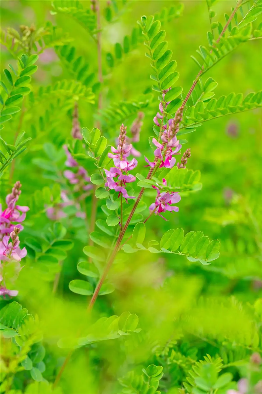 The Himalayan indigo (Indigofera heterantha) is a shrub-like shrub that produces purple-coloured flowers arranged in clusters. They appear from June to October. The Himalayan indigo also has pinnate, medium green leaves. In a sunny location with well-drained, sandy, loamy soil, it usually reaches a height of around 2 metres and grows to around 1.5 metres wide.