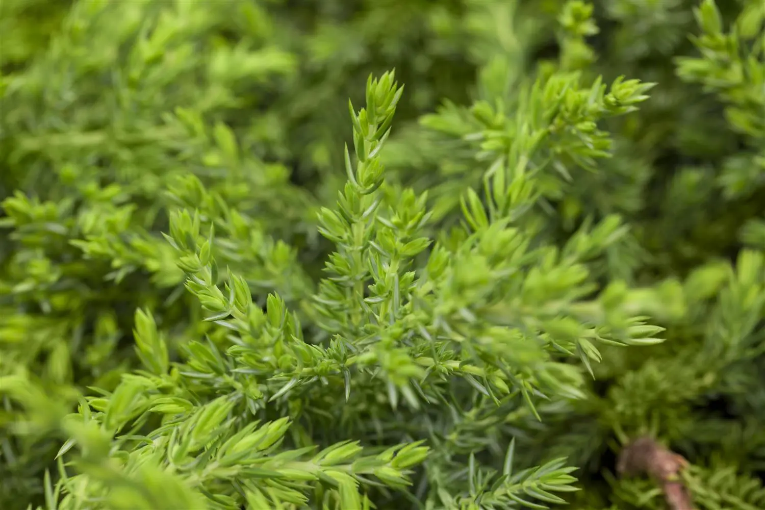 The Chinese juniper 'Greenmantle' (Juniperus communis) is a creeping small shrub. Its leaves have a medium green colour. Decorative black-brown cones adorn Juniperus communis 'Greenmantle' from September. This shrub tolerates frost well and prefers well-drained soil in a sunny position.