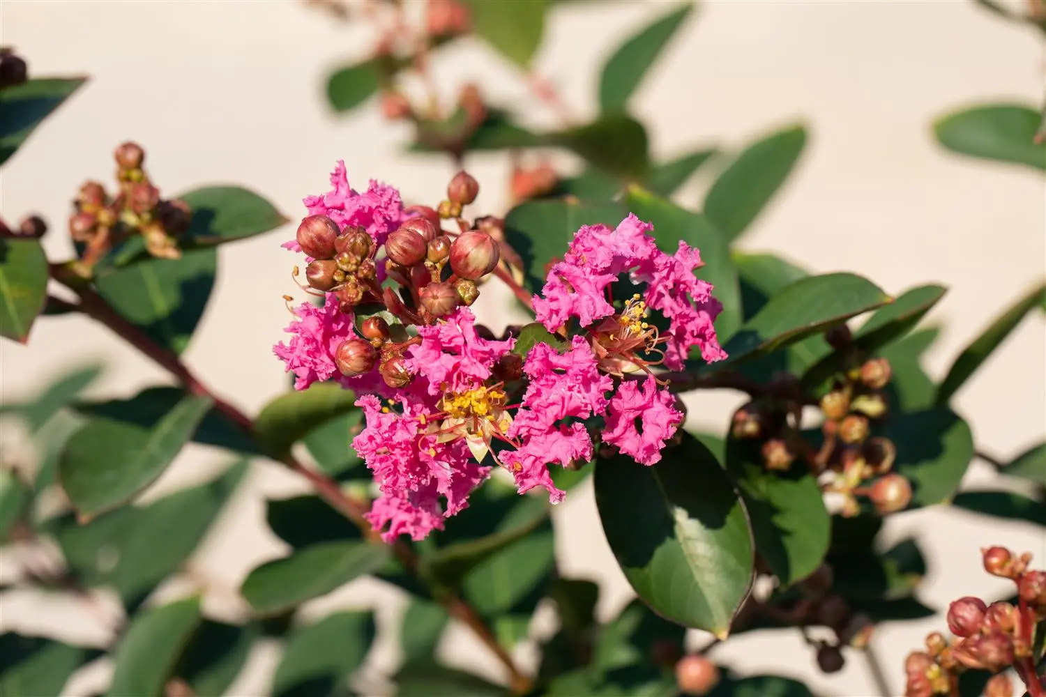 The Crepe myrtle 'Rosea' (Lagerstroemia indica) is a very popular, deciduous tub plant. Its pink-coloured flowers appear from July to September. The location should be as sunny and sheltered as possible. A well-drained and nutrient-rich soil is ideal. Under favourable conditions, the Crepe myrtle 'Rosea' reaches a height of approx. 3 m and grows up to 3 m wide.