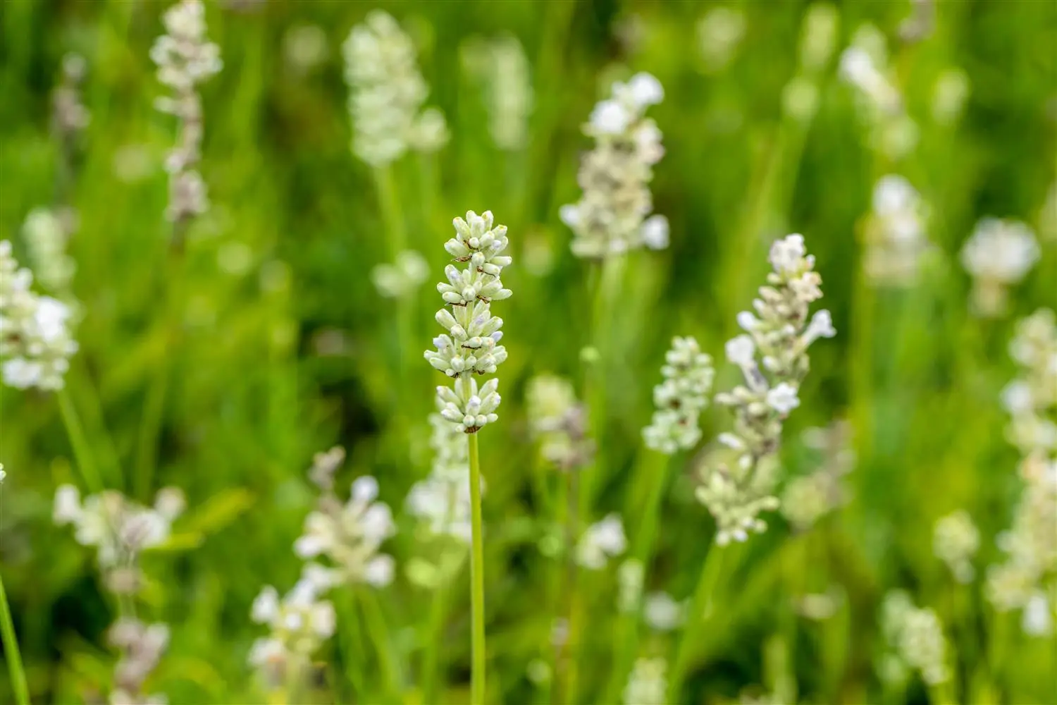 Lavandula angustifolia 'Arctic Snow' forms rake-shaped, white flowers arranged in panicles from June. These exude a pleasant fragrance.