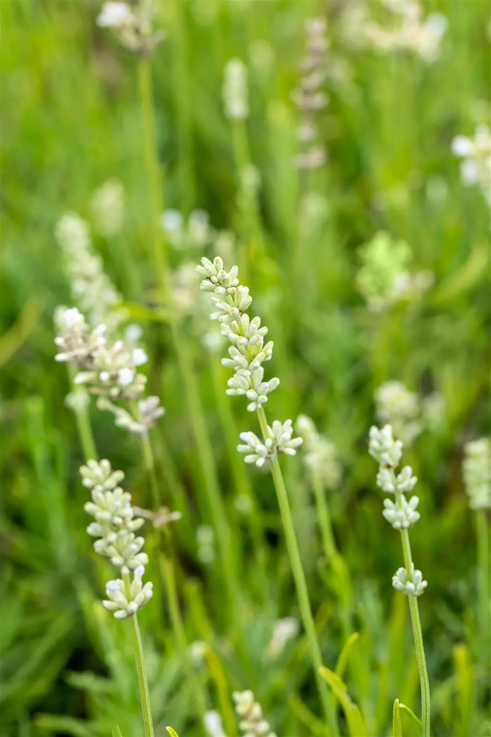 The Lavender 'Arctic Snow' (Lavandula angustifolia) is a bushy, evergreen perennial that produces white, ray-shaped flowers arranged in panicles with a pleasant fragrance from June to July. In a sunny location with well-drained, nutrient-rich soil, it usually reaches a height of approx. 50 cm and grows to a width of approx. 40 cm. The Lavender 'Arctic Snow' is well tolerant of frost.