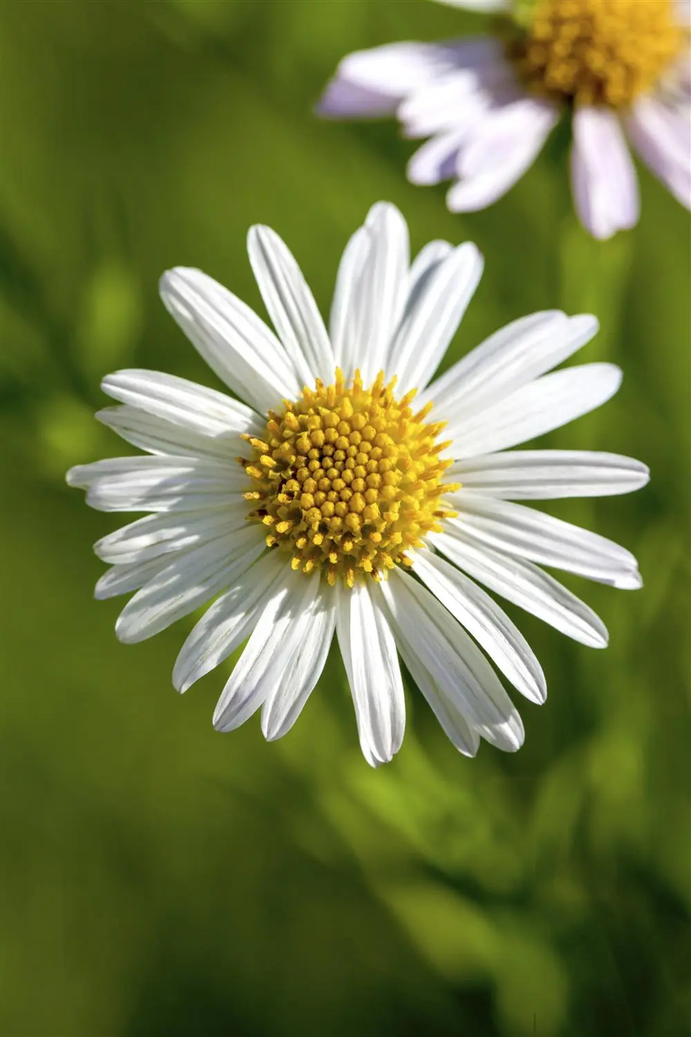 The Ox-eye daisy (Leucanthemum vulgare) is an upright perennial that forms white, basket-shaped flowers from July to September. Its lanceolate leaves are medium green. In a sunny to semi-shady location with well-drained soil, it usually reaches a height of approx. 40 cm and is approx. 40 cm wide. The Ox-eye daisy is well tolerant of frost.