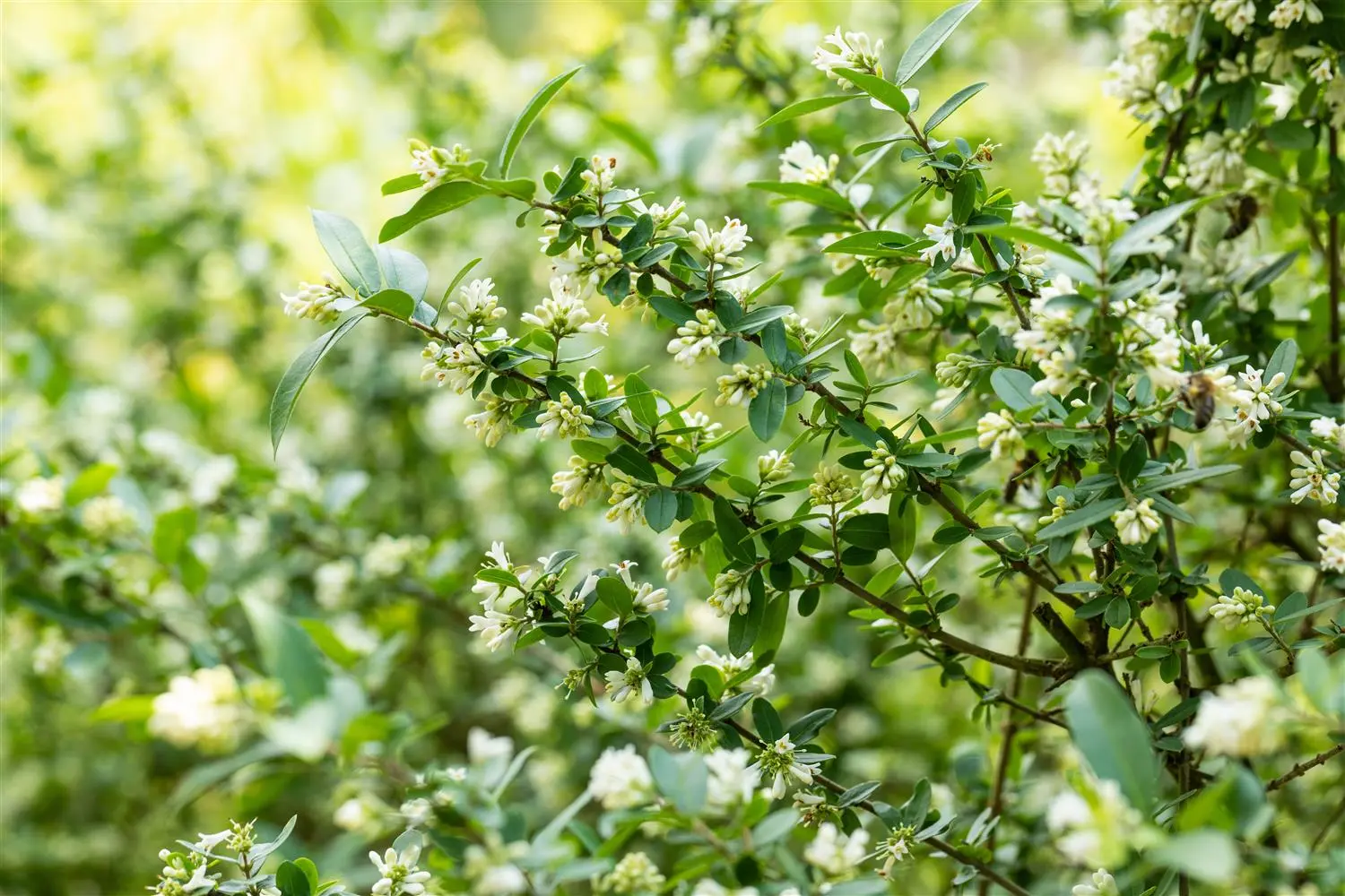 The Golden privet (Ligustrum obtusifolium regelianum) is a bushy, dense shrub with decorative, blue-grey fruits. It produces white flowers arranged in panicles from June to July. The Golden privet also has egg-shaped, grey-green leaves. In a sunny to semi-shady location, it usually reaches a height of around 3 metres and grows to a width of around 5 metres. The Golden privet makes no particular demands on the soil.