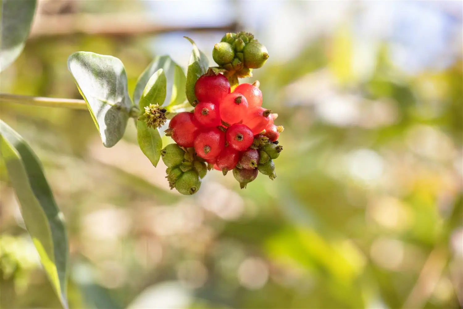 The red fruits of Lonicera heckrottii are particularly decorative.