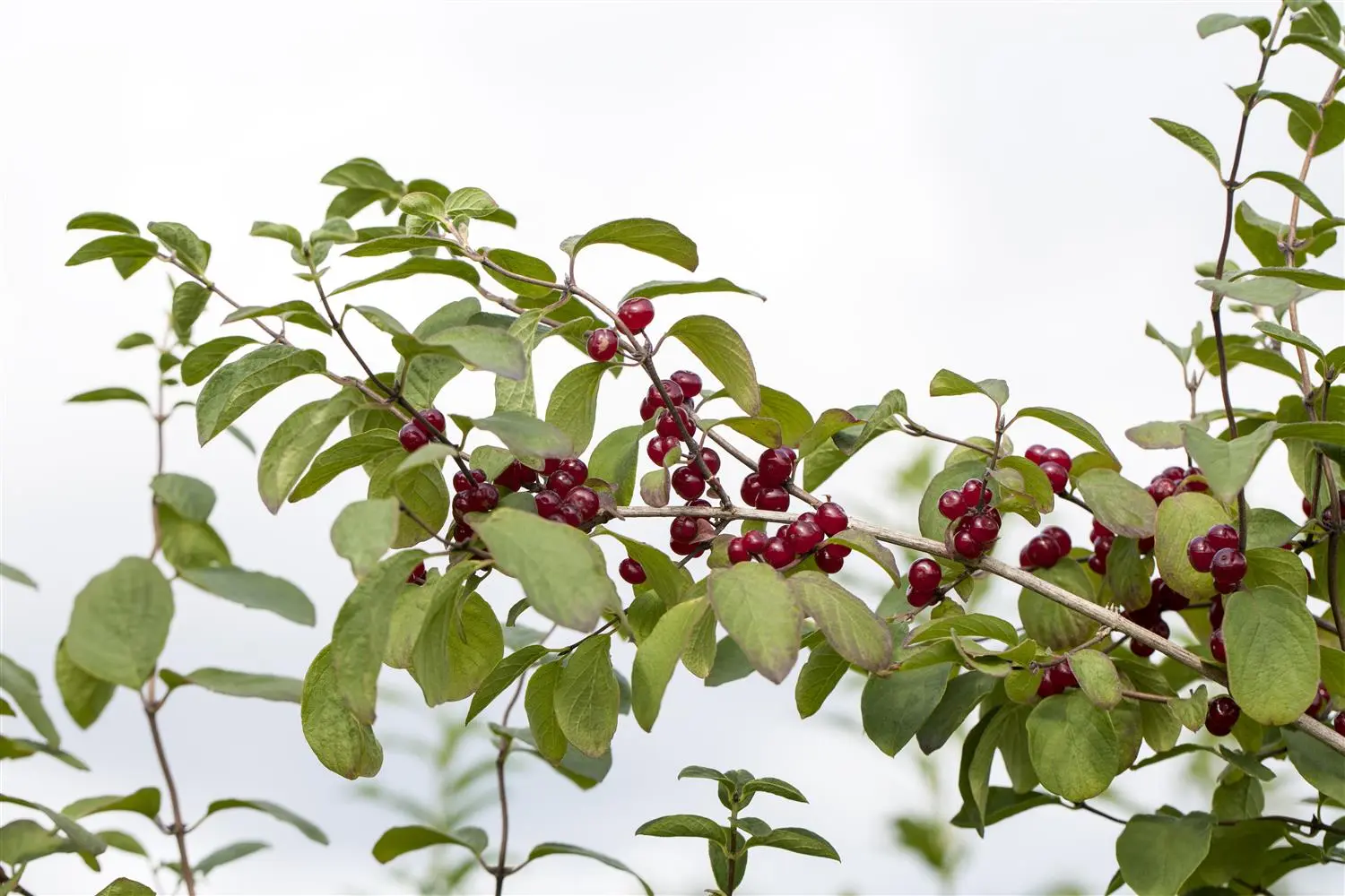 The dark red, round fruits of Lonicera xylosteum are particularly decorative. These appear from August.