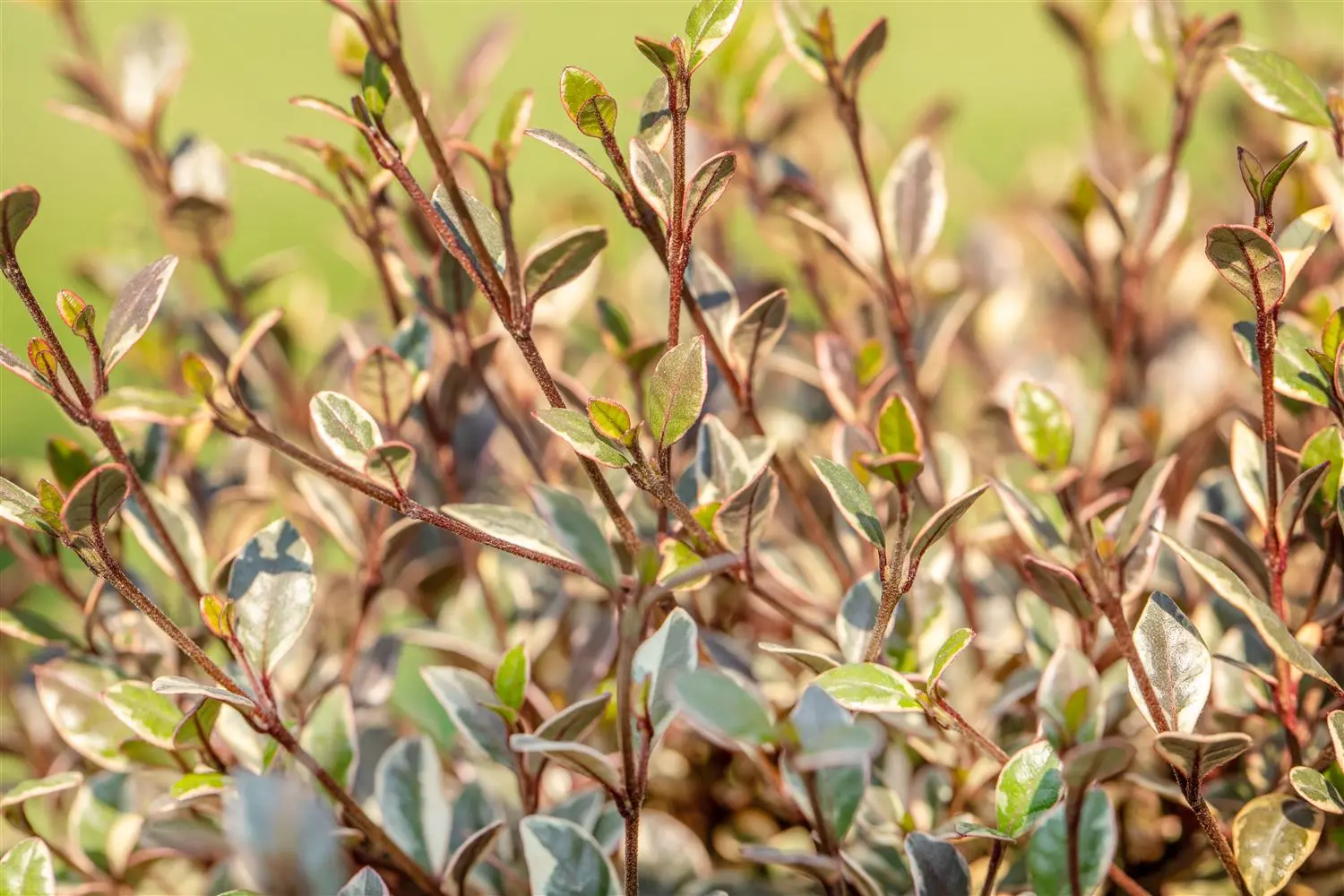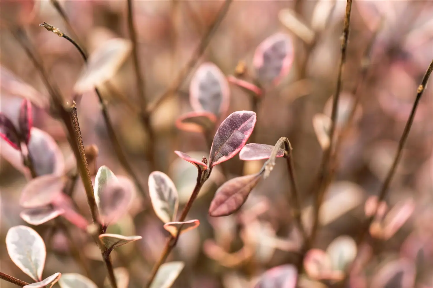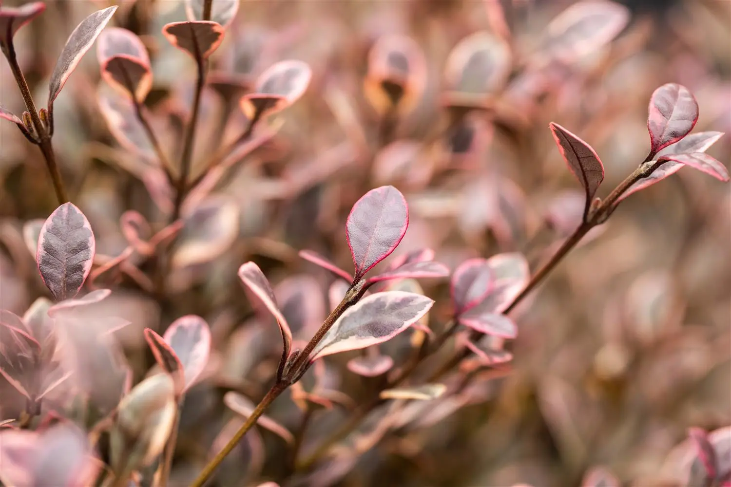 The New Zealand myrtle 'Magic Dragon' (Lophomyrtus x ralphii) is a shrubby, evergreen garden plant with decorative, egg-shaped, burgundy-red leaves with a creamy white-pink margin. It also bears white flowers from June to July. In a sunny to semi-shady location with well-drained soil, it usually reaches a height of approx. 1.6 metres and grows to a width of approx. 1.5 metres.