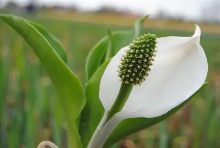 The white, funnel-shaped flowers appear in cobs from April to May.