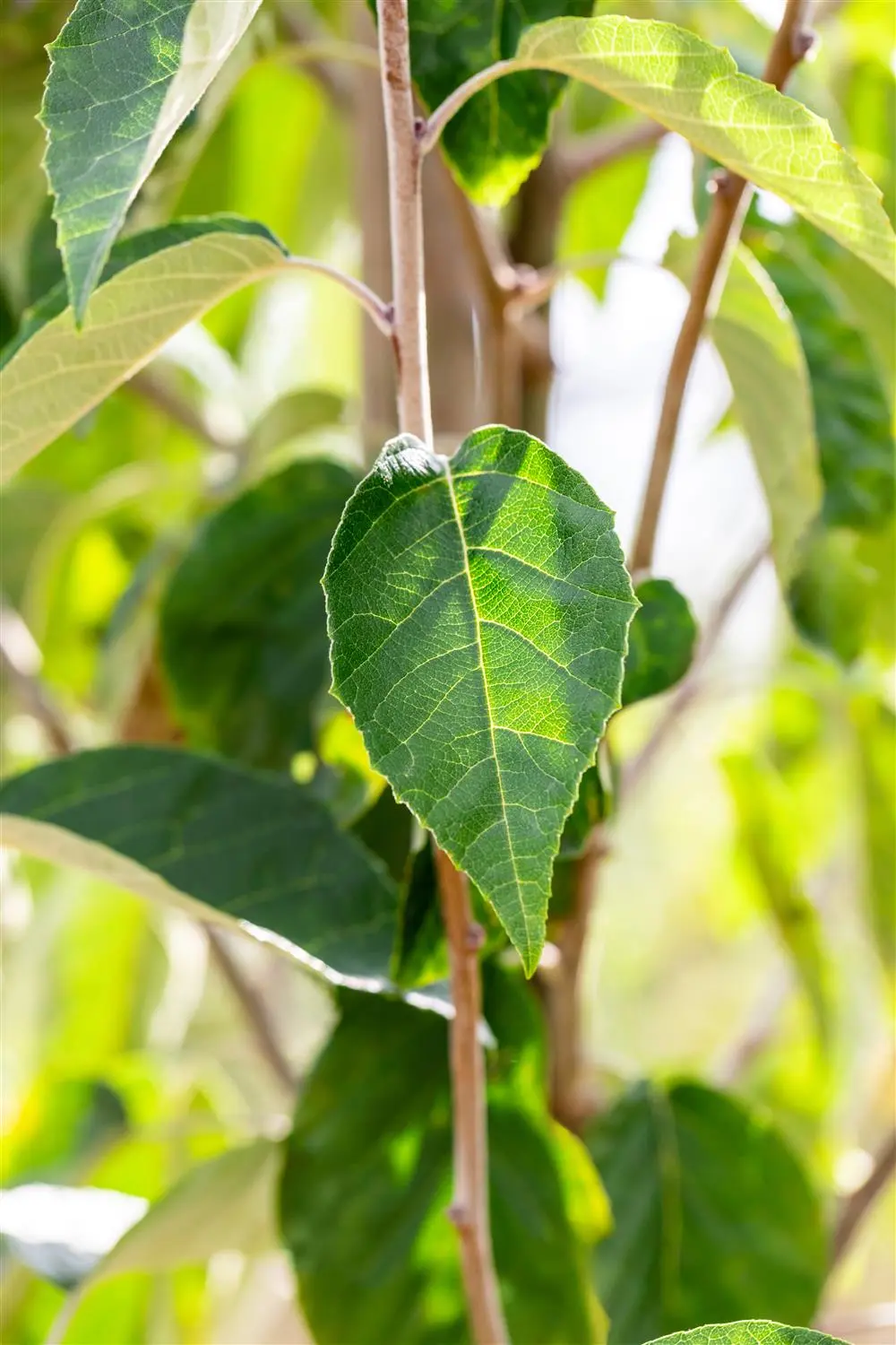 The Apple (Malus tschonoskii) is a small ovoid tree with decorative, yellow-red fruits. It produces white flowers in May. The Apple also has egg-shaped, medium green leaves. In a semi-shady location with loamy soil, it usually grows to a height of around 12 metres and is around 6 metres wide.