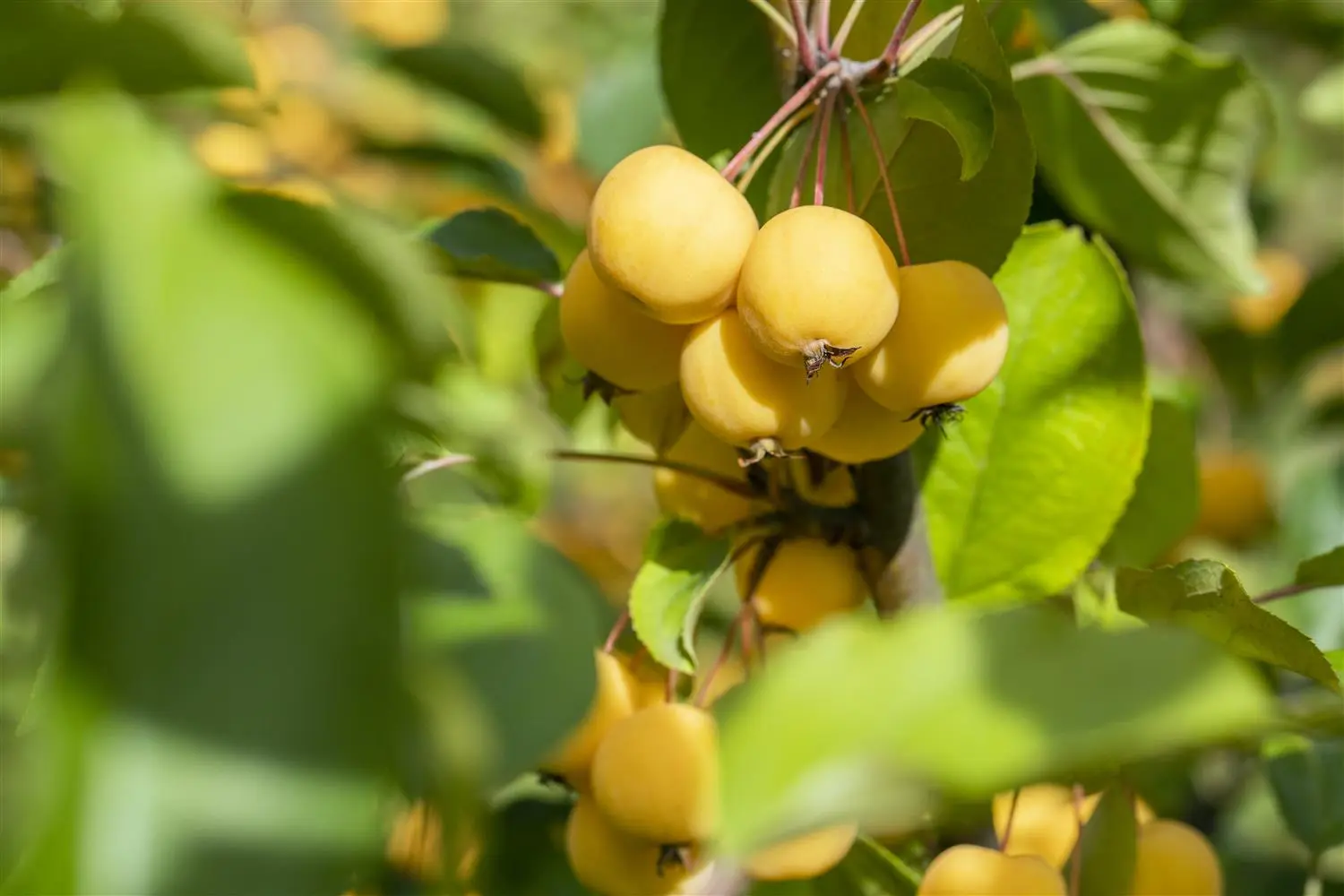 The yellow, round fruits of Malus 'Wintergold' are particularly decorative. These appear from September. Adhere for a very long time.