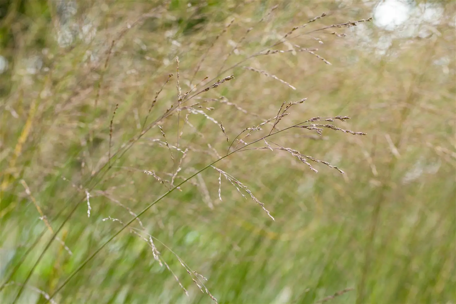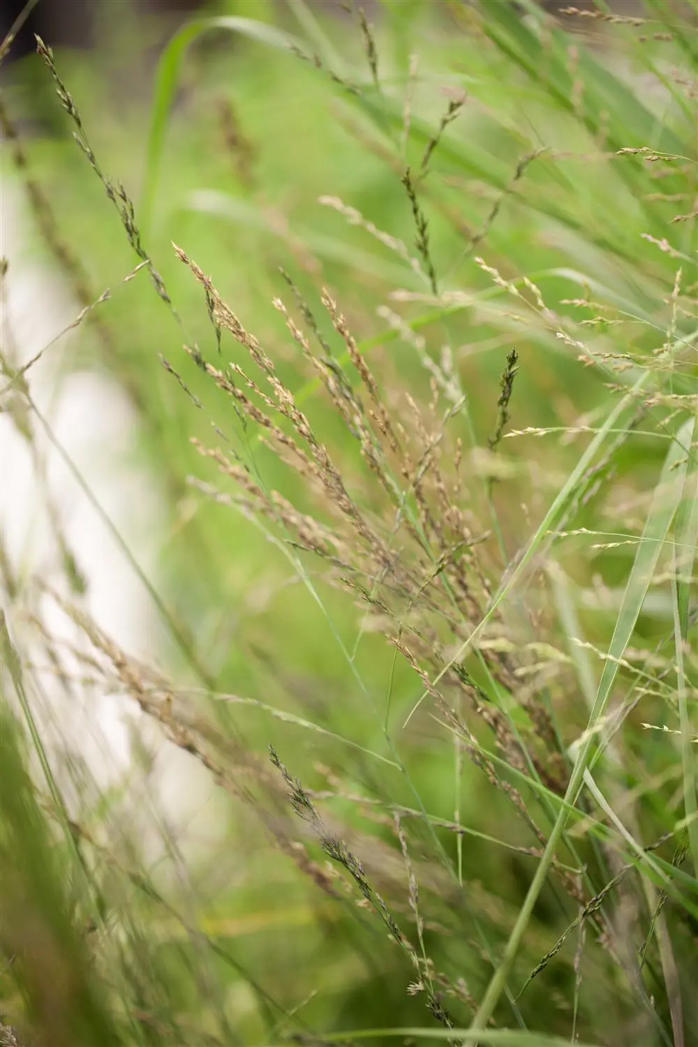 With its medium green leaf colouring, Molinia 'Transparent' (Molinia arundinacea) is a decorative design element in the garden, which also stands out with its upright growth. The yellow-green flower panicles adorn this grass from summer onwards. It feels most at home in a sunny to semi-shady location with well-drained, humus-rich soil. In favourable conditions, this hardy grass reaches a height of approx. 1.8 m and grows up to 1.2 m wide.