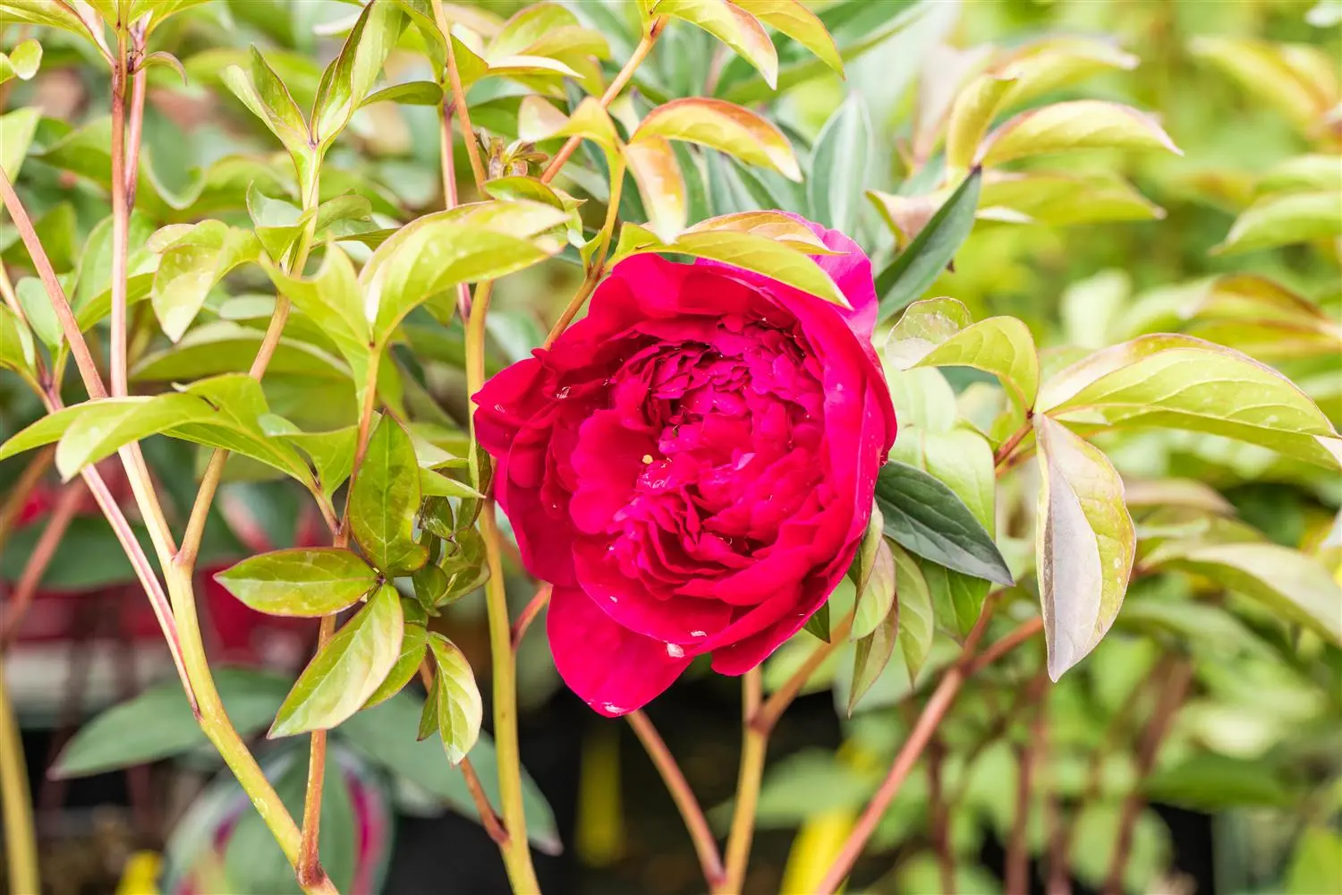 The Peony 'Inspecteur Lavergne' (Paeonia lactiflora) is an upright, spreading perennial that produces dark red, cupped flowers in June. Its fingered leaves are dark green. In a sunny location with humus-rich, nutrient-rich, loamy soil, it usually reaches a height of approx. 1 m and is approx. 1 m wide. The Peony 'Inspecteur Lavergne' is well tolerant of frost.