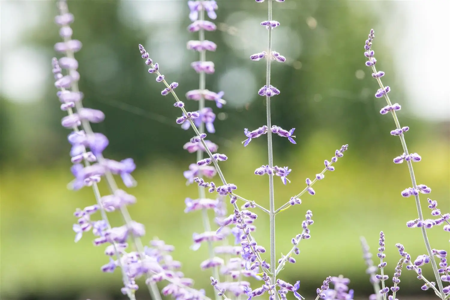 The Russian sage 'Blue Spire' (Perovskia atriplicifolia) is an upright, fine-stemmed, loose semi-shrub that produces blue flowers arranged in spikes with a pleasant fragrance. They appear from July to October. The Russian sage 'Blue Spire' also has hairy, lanceolate, grey-green leaves. Its bark is silver-grey. In a sunny location with well-drained, sandy soil, it usually reaches a height of approx. 1.5 metres and grows to a width of approx. 1.5 metres.