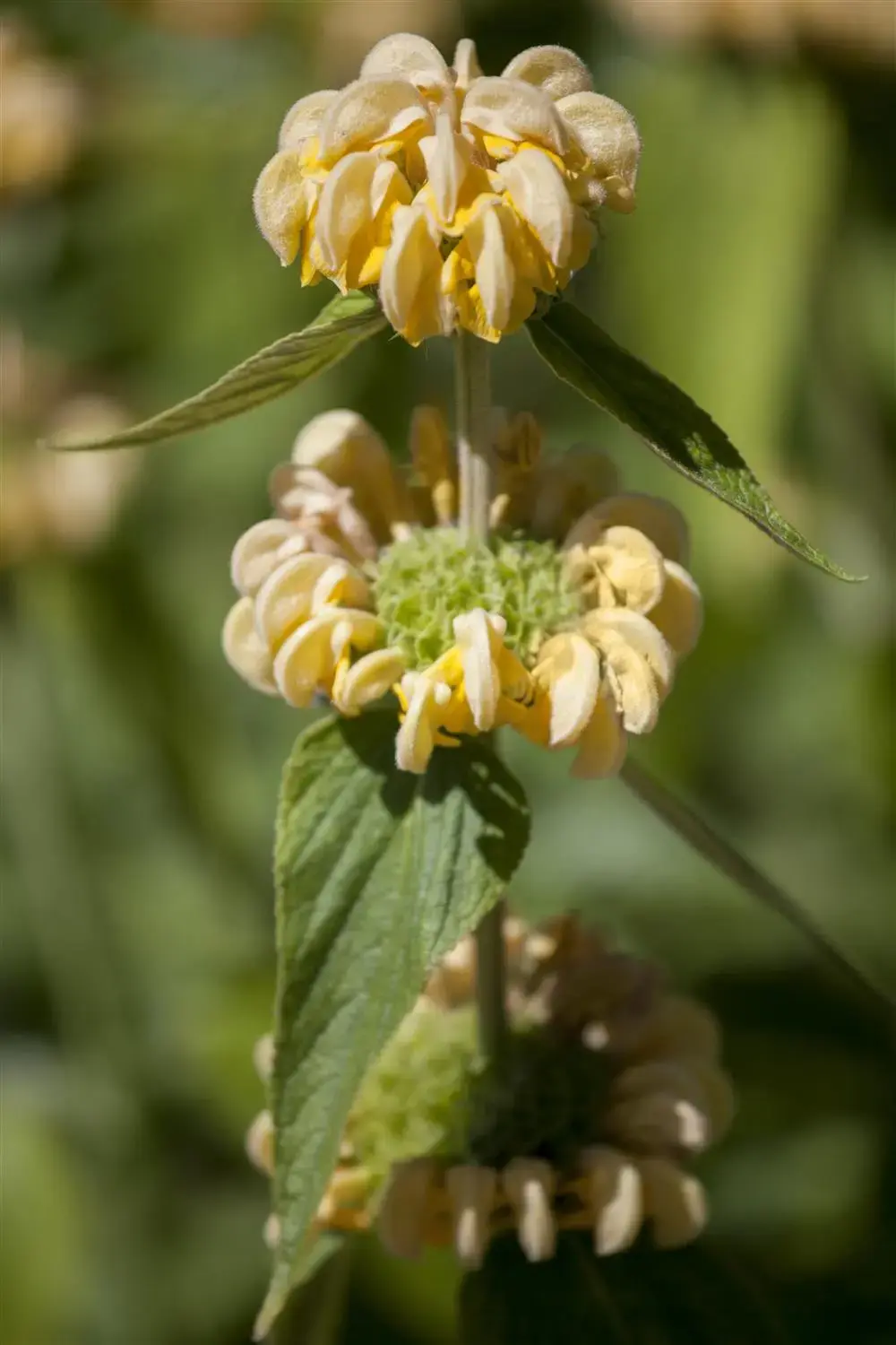 Phlomis russeliana forms yellow flowers arranged in whorls from June.