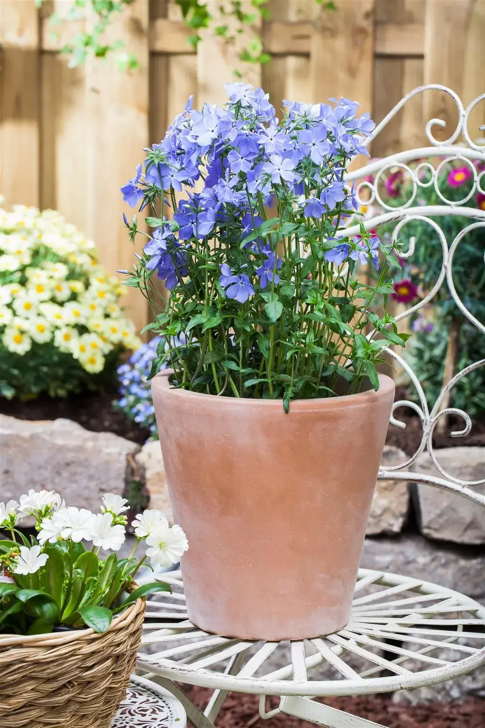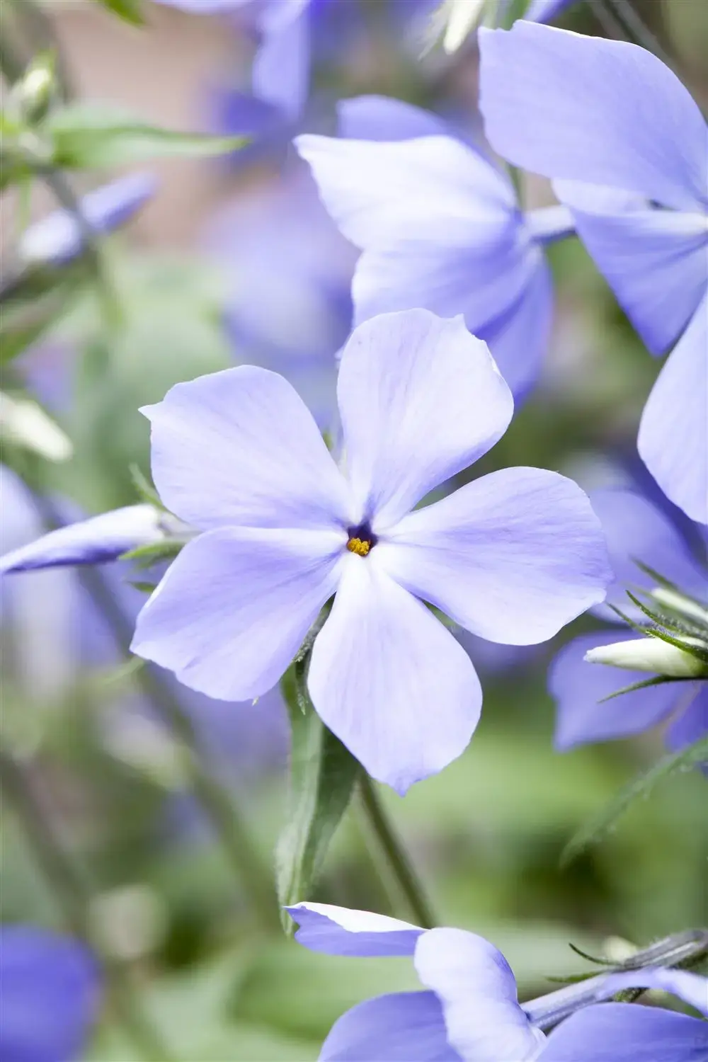 Phlox divaricata 'Blue Moon' forms wheel-shaped, blue flowers arranged in umbels from April. These exude a strong fragrance.