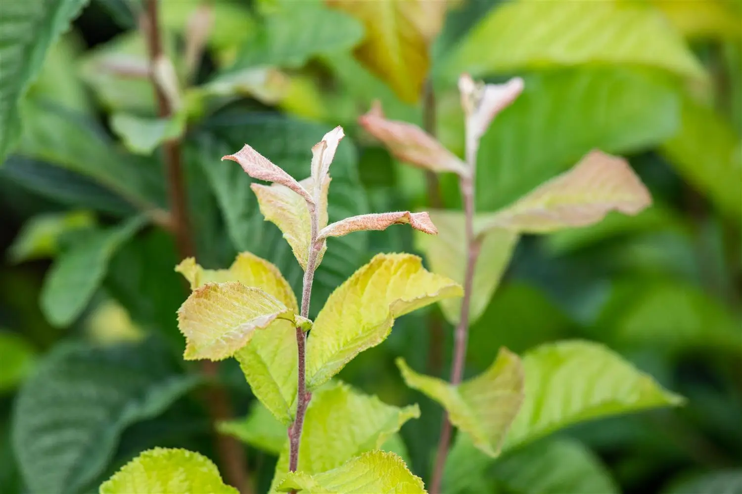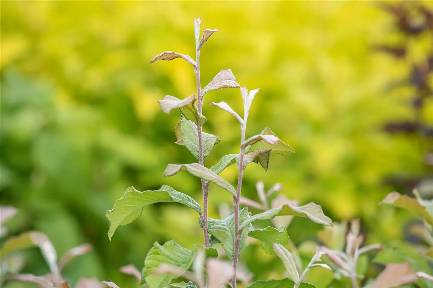 The Oriental photinia (Photinia villosa) is a bushy, broad, loose, large shrub with decorative, bright red, round fruits that stay on for a very long time. It produces white flowers arranged in corymbs from May to June. The Oriental photinia also has egg-shaped, dark green leaves. In a sunny to semi-shady location with well-drained, humus-rich, nutrient-rich soil, it usually reaches a height of around 5 metres and grows to a width of around 5 metres.