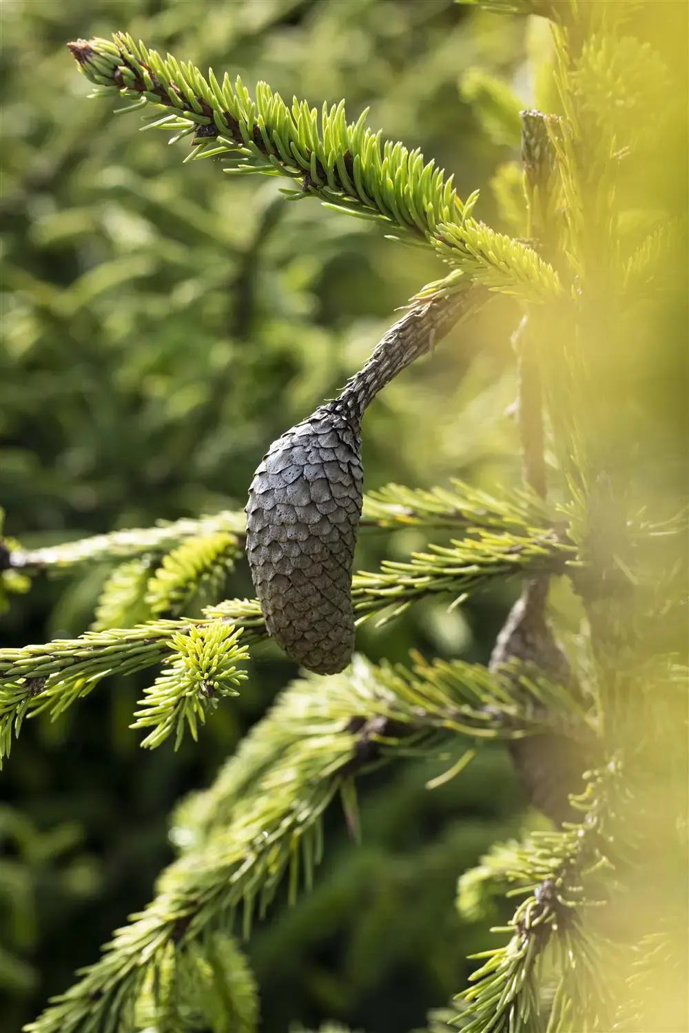 The Norway spruce 'Acrocona' (Picea abies) is a small tree that grows conical, broad, picturesque and usually reaches a height of about 5 metres and a width of about 4 metres. Its needle-shaped leaves are dark green in colour. Decorative brown cones adorn Picea abies 'Acrocona' from September. This shrub is well tolerant of frost and prefers sandy, loamy, slightly acidic soil in a sunny to semi-shady position.