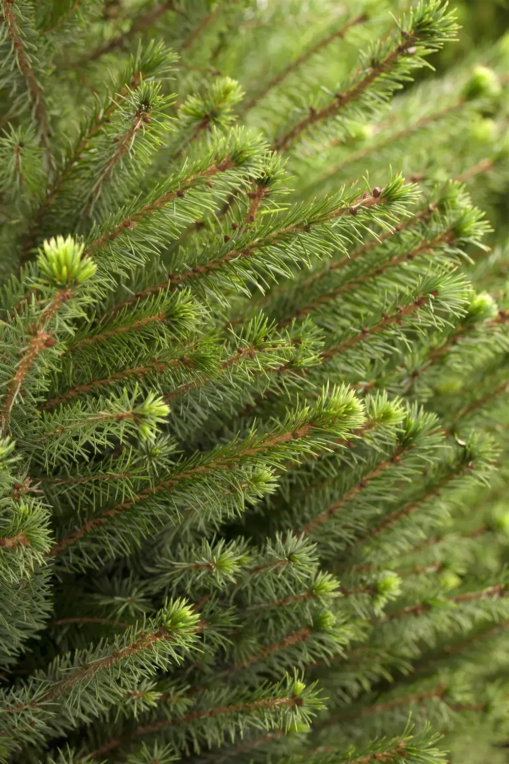The Serbian spruce (Picea omorika) is a large tree that grows conical and slender and usually reaches a height of around 25 metres and a width of around 5 metres. Its needle-shaped, glossy leaves are dark green in colour. This shrub is well tolerant of frost and prefers well-drained soil in a sunny position.