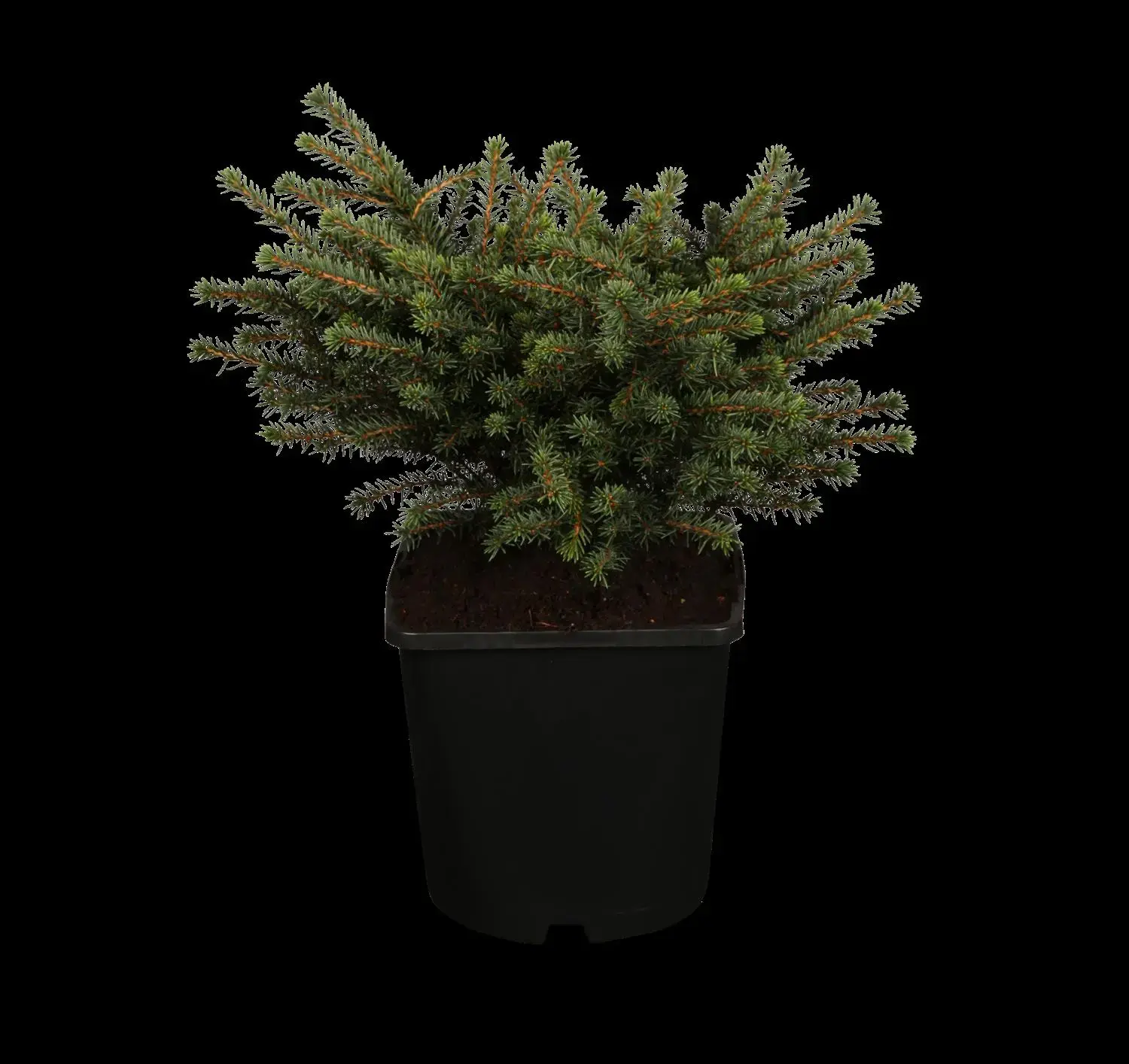 The Serbian spruce 'Karel' (Picea omorika) is a small shrub that grows dense and rounded and usually reaches a height of around 1.3 metres and a width of around 1.3 metres. Its needle-shaped leaves are blue-green in colour. It prefers well-drained soil in a sunny position.
