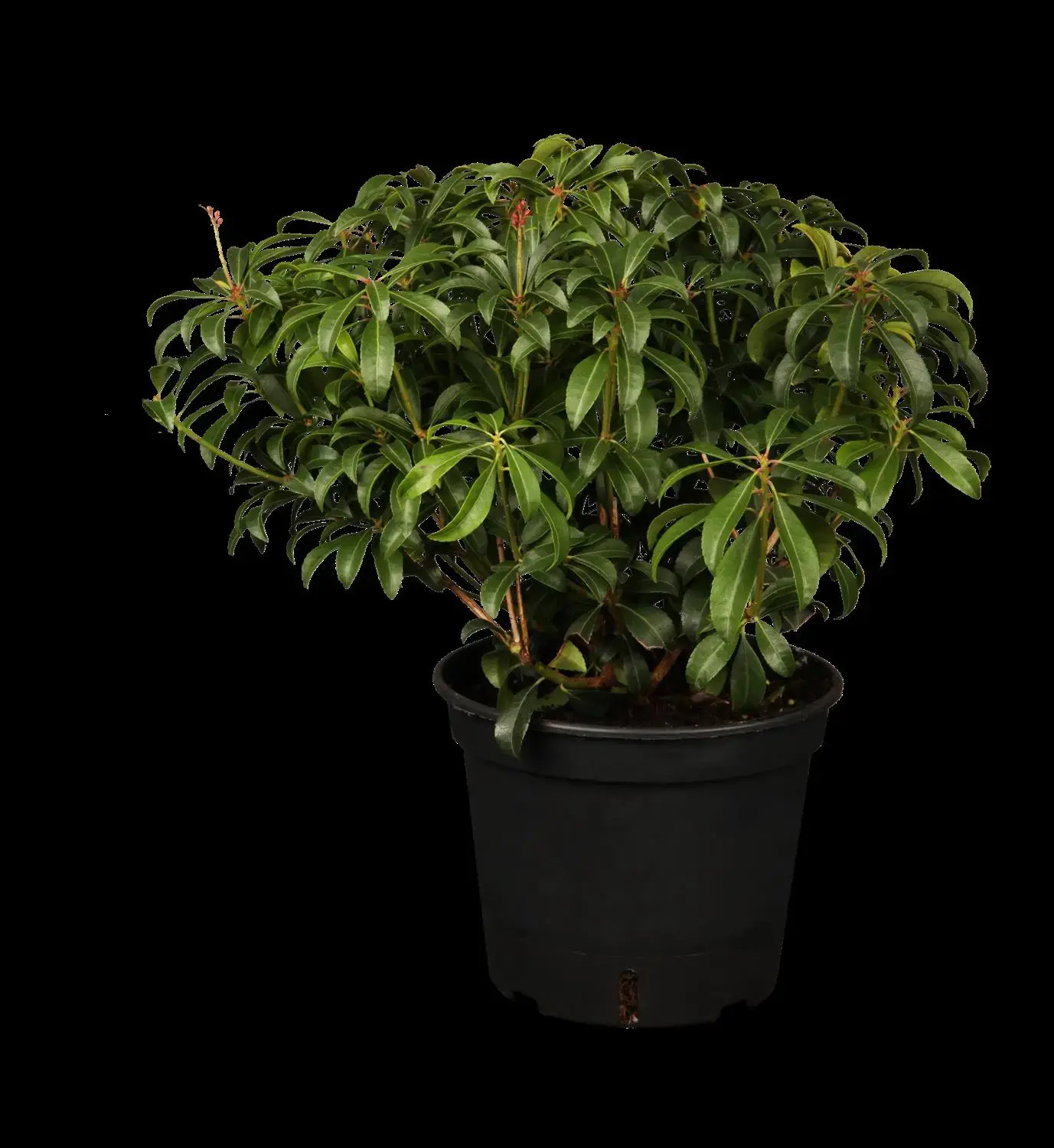 Pieris japonica 'Bonfire' is a shallow-rooting plant and, depending on the soil, forms finely branched roots.