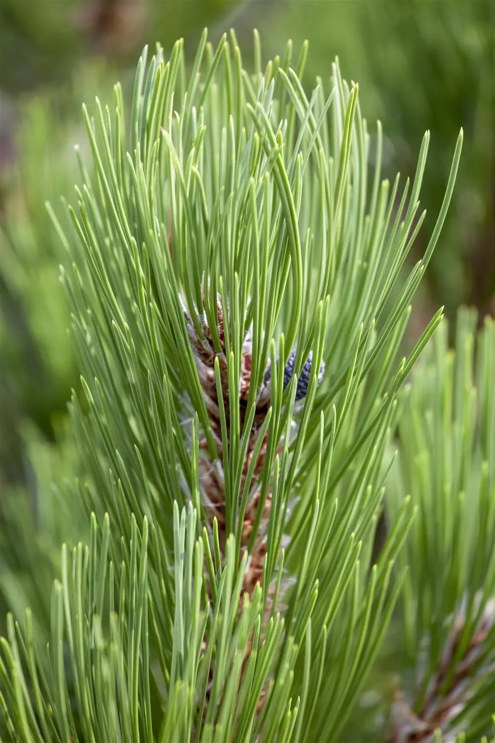 The Bosnian pine 'Compact Gem' (Pinus heldreichii) is a shrub that grows stocky, pyramidal and usually reaches a height of around 3.5 metres and a width of around 3 metres. Its needle-shaped leaves are dark green in colour. Decorative dark brown cones adorn Pinus heldreichii 'Compact Gem' from September. This shrub is well tolerant of frost and prefers well-drained soil in a sunny position.