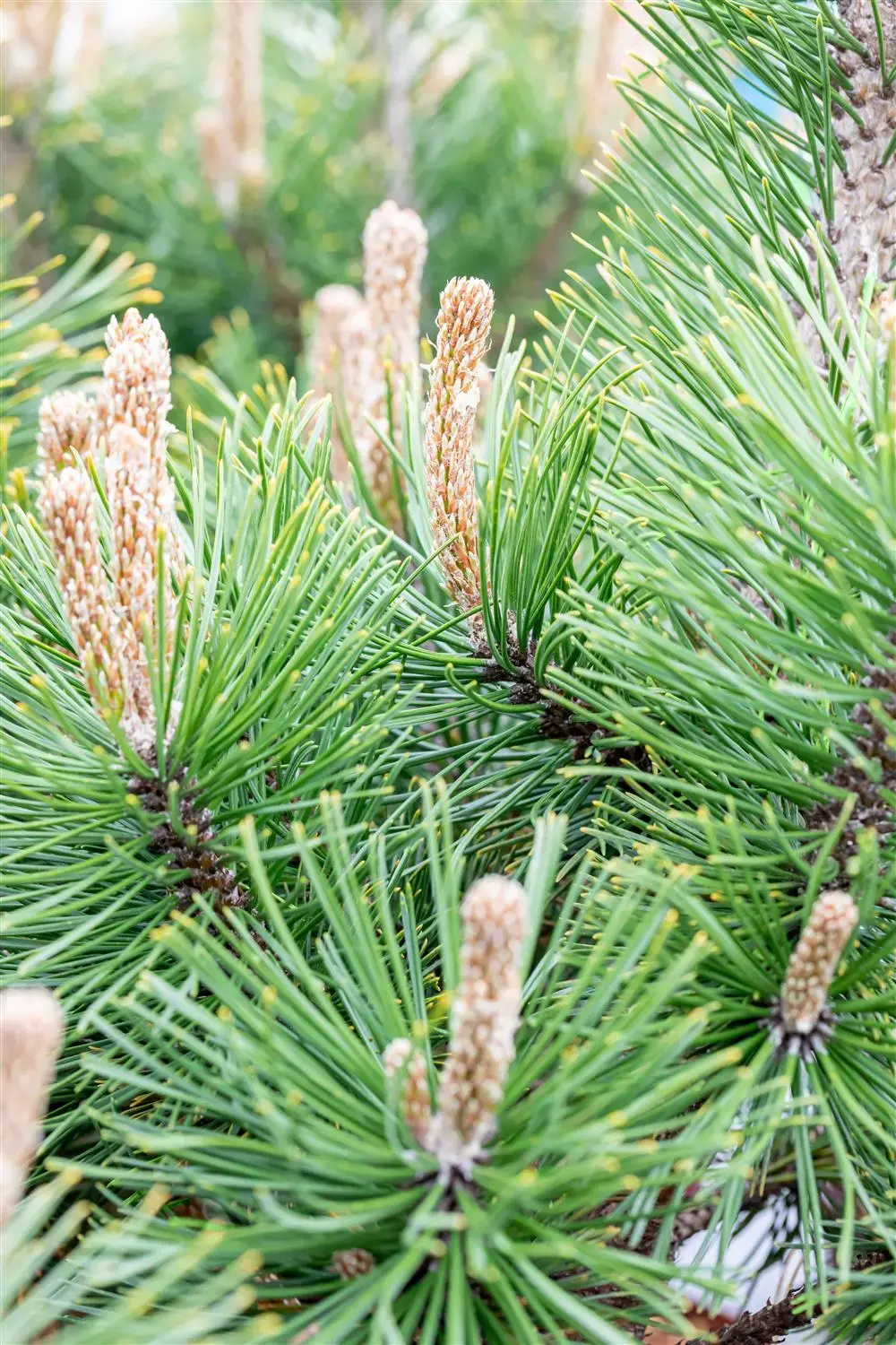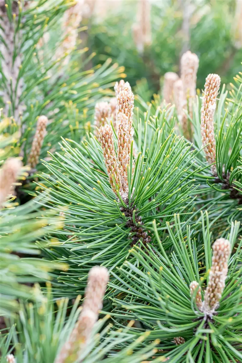 The cones of Pinus mugo 'Alpenzwerg' appear from October. The young cones have a pinkish-red colour.