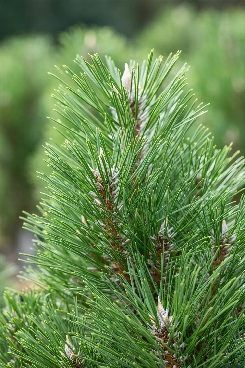 The Austrian pine 'Komet' (Pinus nigra) is a shrub that grows columnar, slender and usually reaches a height of approx. 2.5 m and a width of approx. 80 cm. Its needle-shaped leaves are blue-green in colour. Decorative cones adorn Pinus nigra 'Komet' from September. This shrub is well tolerant of frost and prefers well-drained, calcareous, sandy soil in a sunny position.