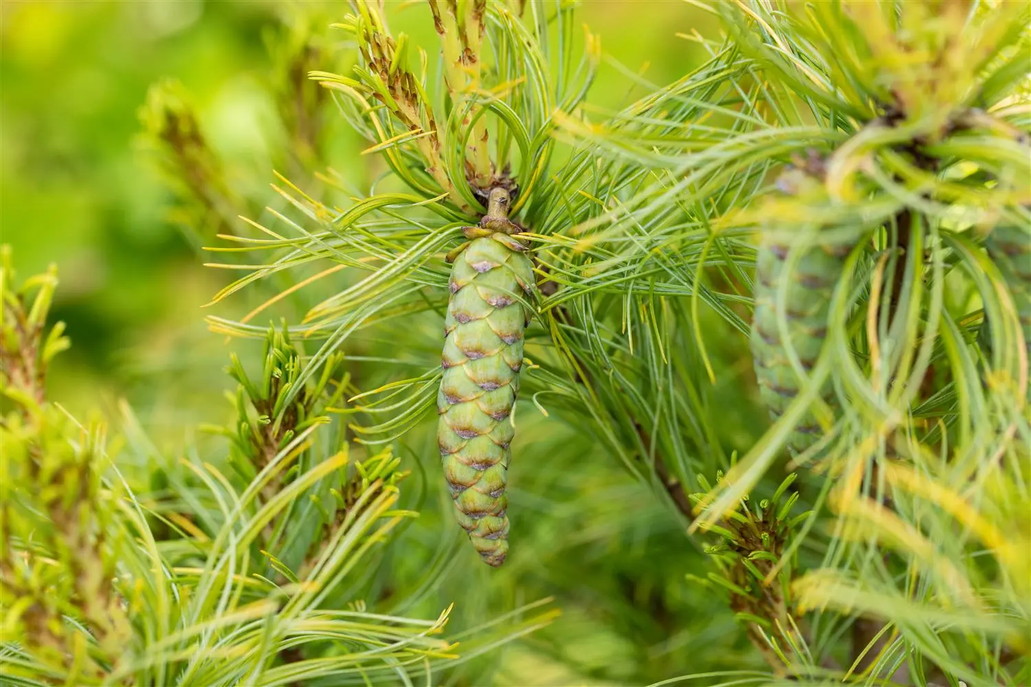 The Weymouth pine 'Tiny Curls' (Pinus strobus) is a large tree that grows in a conical shape and usually reaches a height of around 3 metres and a width of around 1.5 metres. Its leaves have a silvery colour. This tree is well tolerant of frost and prefers humus-rich, loose soil in a sunny to semi-shady position.