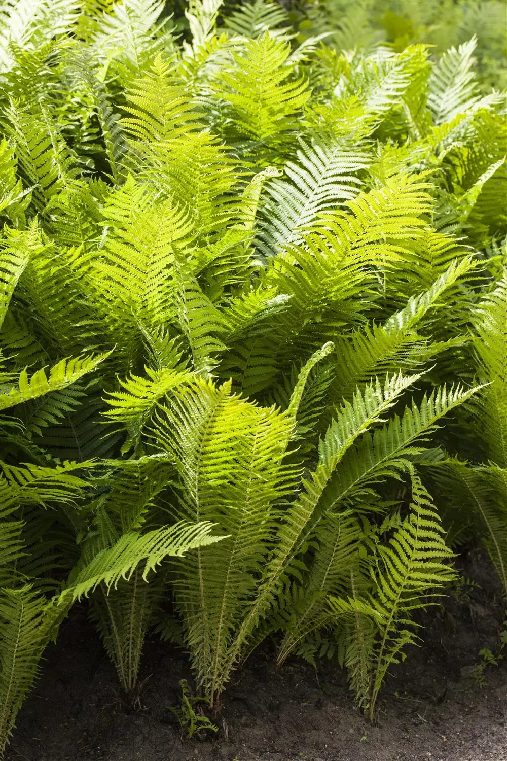 The Hard shield fern (Polystichum aculeatum) with its feathery, dark green leaf fronds is a decorative design element in the garden. It feels most at home in a semi-shady to shady location with well-drained, humus-rich soil. In favourable conditions, this hardy fern reaches a height of approx. 80 cm and grows up to 50 cm wide.