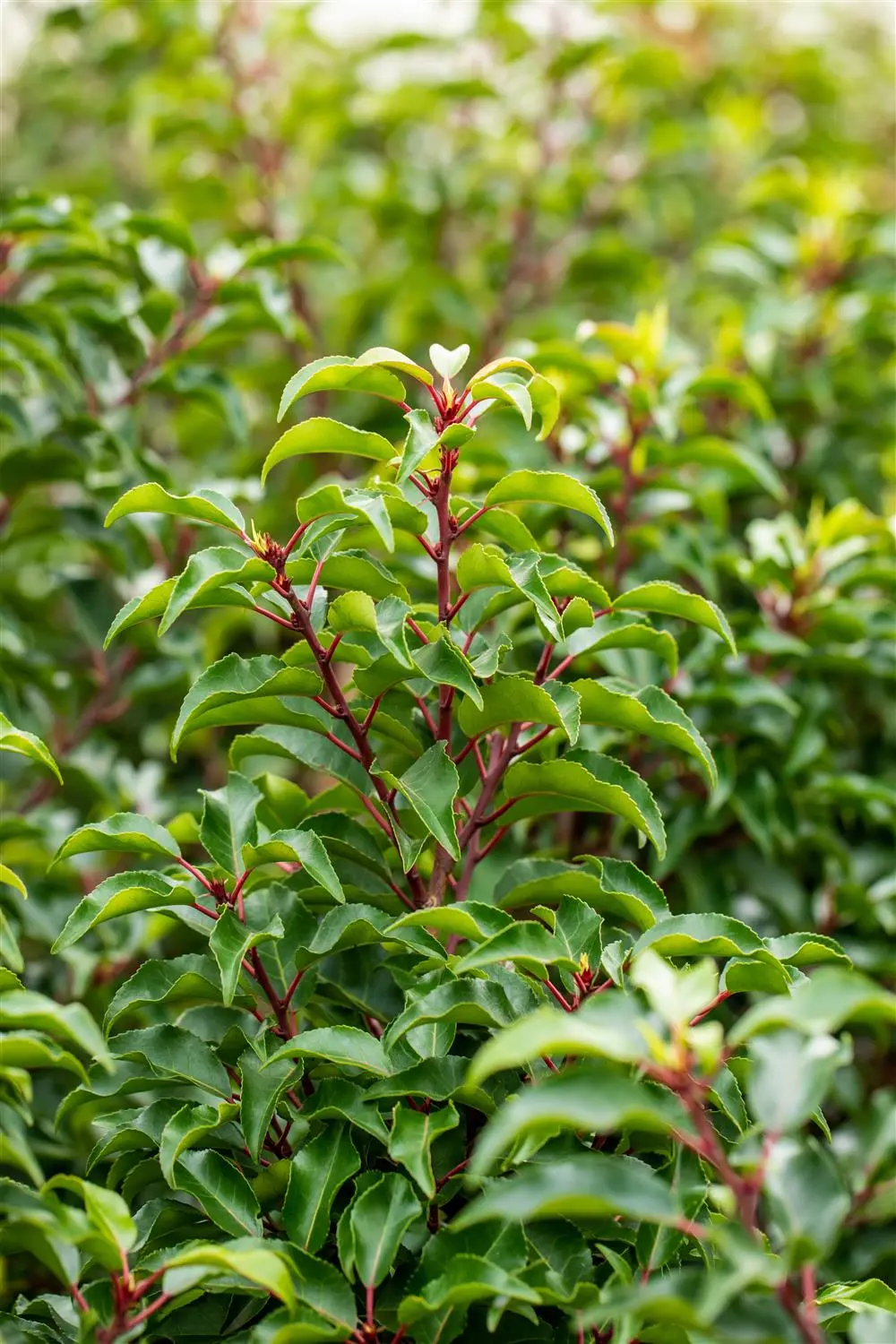 Portugal laurel 'Brenelia'® is an irregularly growing, picturesque shrub. It usually reaches a height of 2 - 2.5 m and is approx. 1.5 - 2 m wide. It usually grows 20 - 30 cm per year.