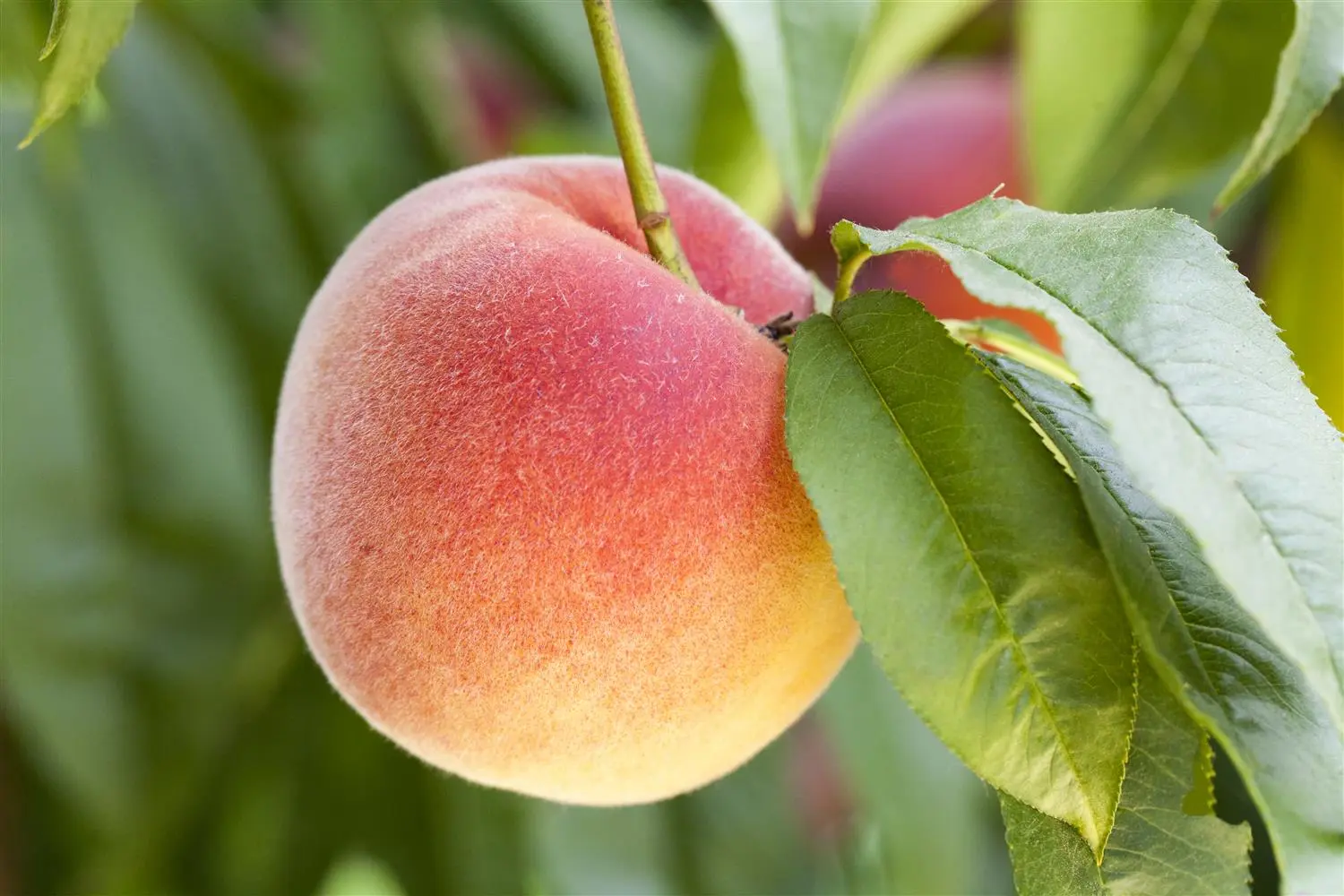 The Peach 'Amsden' (Prunus persica) produces red-yellow, medium-sized, easily stone-dissolving fruits. They have a sweet, spicy flavour. Loose, nutrient-rich, sandy soil and a sunny location create ideal conditions for a high-yielding harvest from July. Its pink-coloured flowers are a beautiful sight. With its broad growth, the Peach 'Amsden' grows to around 4 metres high and 4 metres wide.