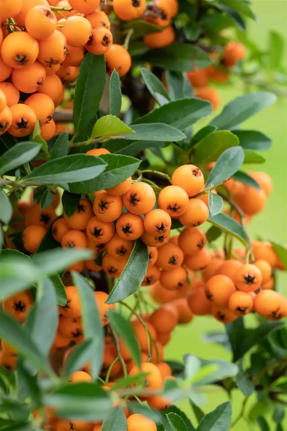 The orange-coloured, round fruits of Pyracantha coccinea are particularly decorative. These appear from September. Sticks for a very long time.