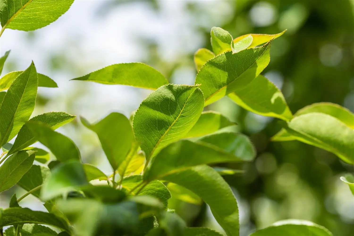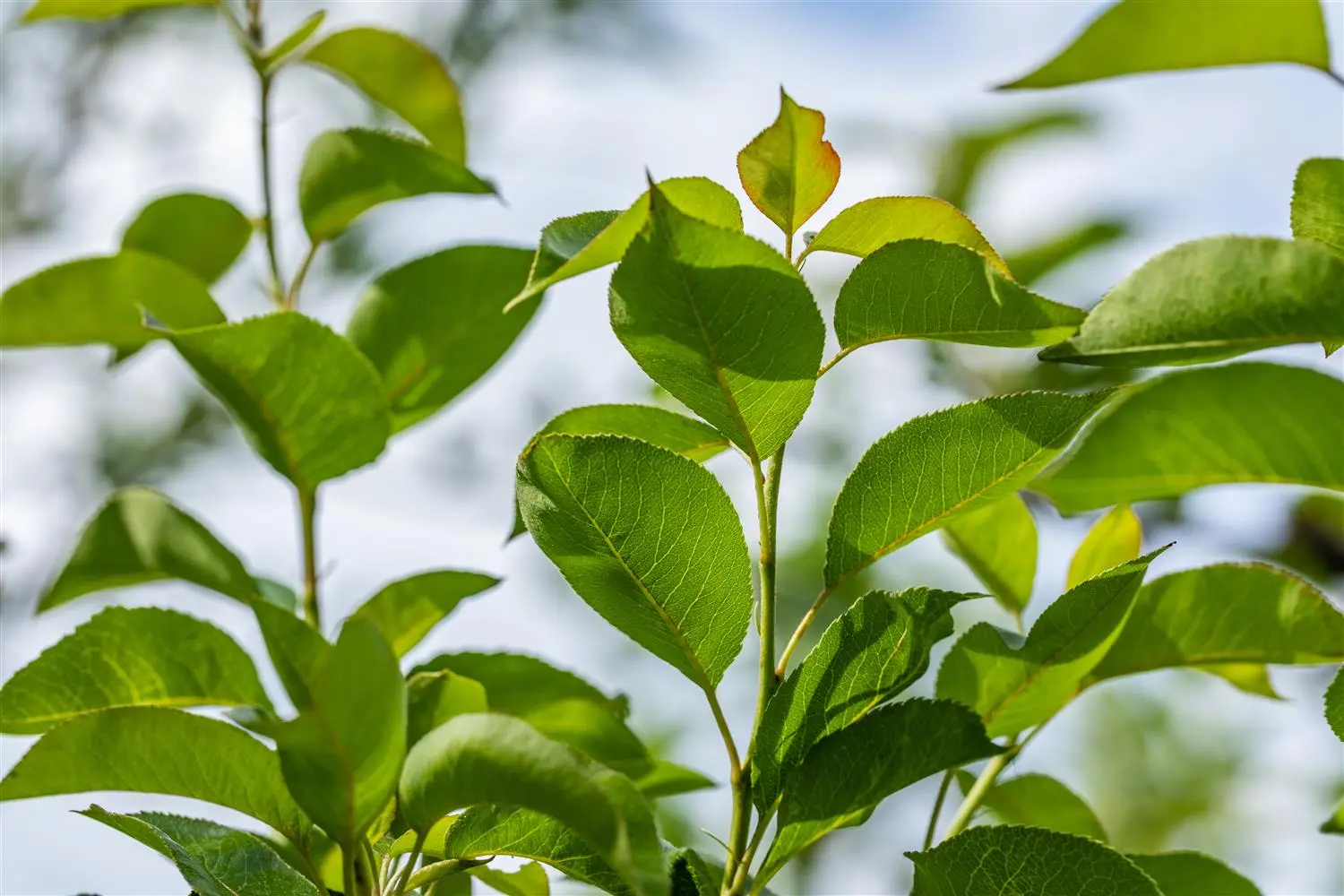 The Common pear 'Williams Christ' (Pyrus communis) produces yellow, medium-firm and juicy fruits. They have a sweet flavour. Loose, loamy soil and a sunny to semi-shady location create ideal conditions for a high-yielding harvest from mid-August. Its white flowers are a beautiful sight. With its conical, upright and branched growth, the Common pear 'Williams Christ' grows to around 5 metres high and 4 metres wide.