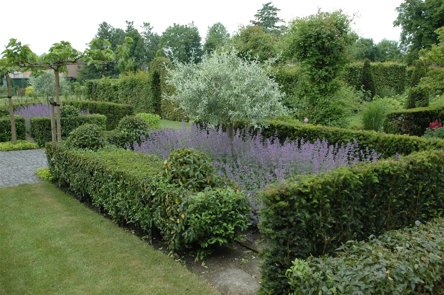 The Willow-leaved pear (Pyrus salicifolia) is an overhanging, picturesque small tree that produces white flowers arranged in corymbs. They appear from the end of April to May. These produce green, pear-shaped fruits. The Willow-leaved pear also has matt, lanceolate, silver-grey leaves. In a sunny location with well-drained, nutrient-rich soil, it usually reaches a height of approx. 7 metres and is approx. 4 metres wide.