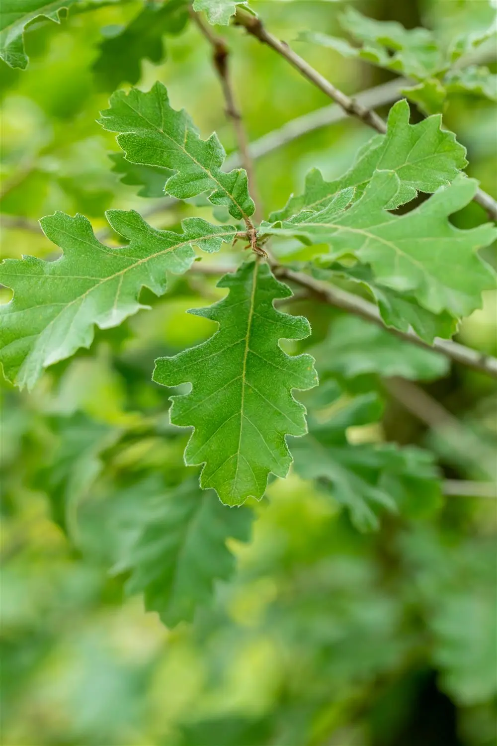 The deciduous leaves of the Downy oak are medium green, egg-shaped. They are about 5 - 10 cm in size.