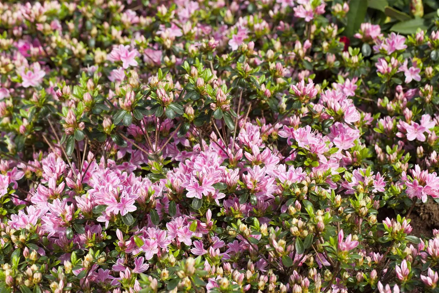 Rhododendron obtusum 'Kermesina Rose' is a shallow-rooting plant and, depending on the soil, forms finely branched roots.
