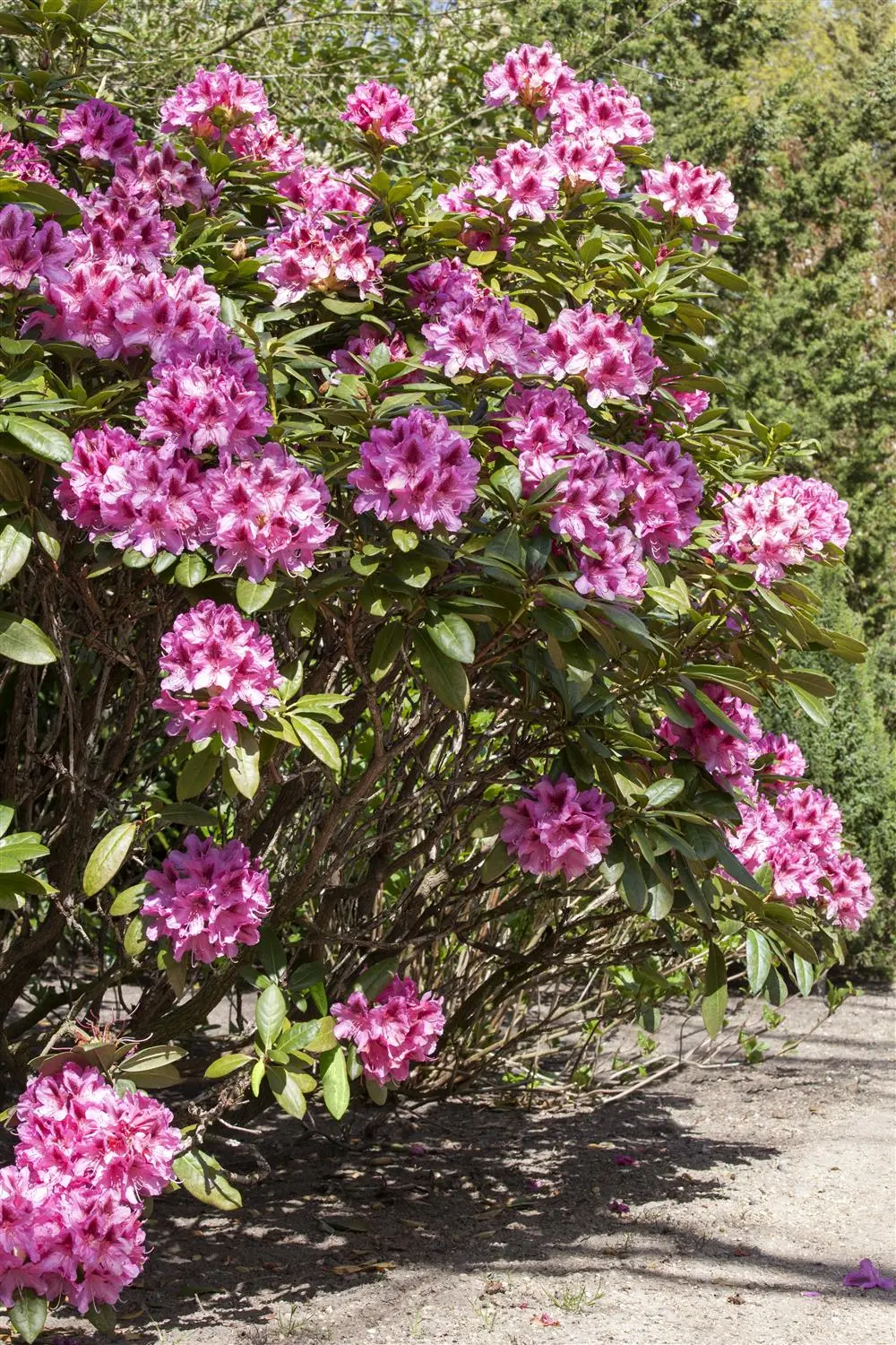 From May to June, the Rhododendron 'Cosmopolitan' (Rhododendron) produces a veritable sea of pink-coloured flowers with red. This upright, bushy, broad-growing shrub usually reaches a height of 2 - 2.5 metres and a width of 2 to 2.5 metres. A semi-shady (to shady) location and humus-rich, lime-free soil create optimum conditions for healthy growth. The Rhododendron 'Cosmopolitan' is well tolerant of frost.