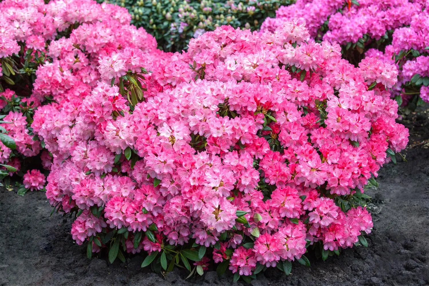 Rhododendron 'English Roseum' is upright, bushy and broad in habit.