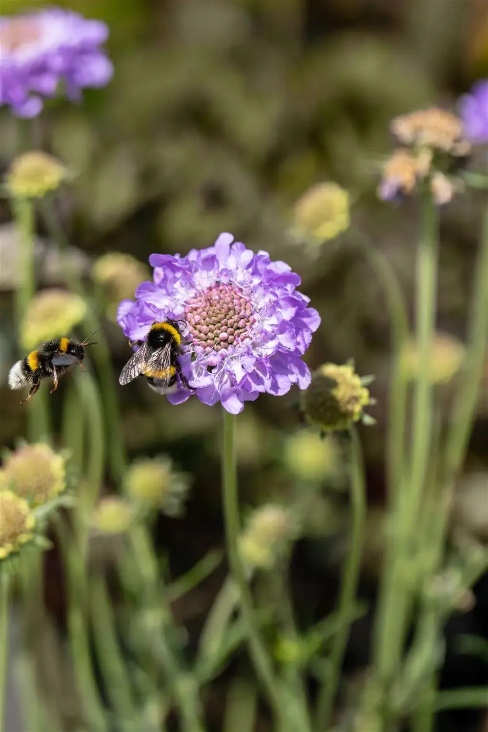 The Small scabious 'Mariposa Blue' (Scabiosa columbaria) is a bushy, upright perennial that produces bright purple flowers from May to July. Its leaves are medium green in colour. In a sunny location with well-drained, nutrient-rich soil, it usually reaches a height of approx. 50 cm and is approx. 30 cm wide. The Small scabious 'Mariposa Blue' is well tolerant of frost.