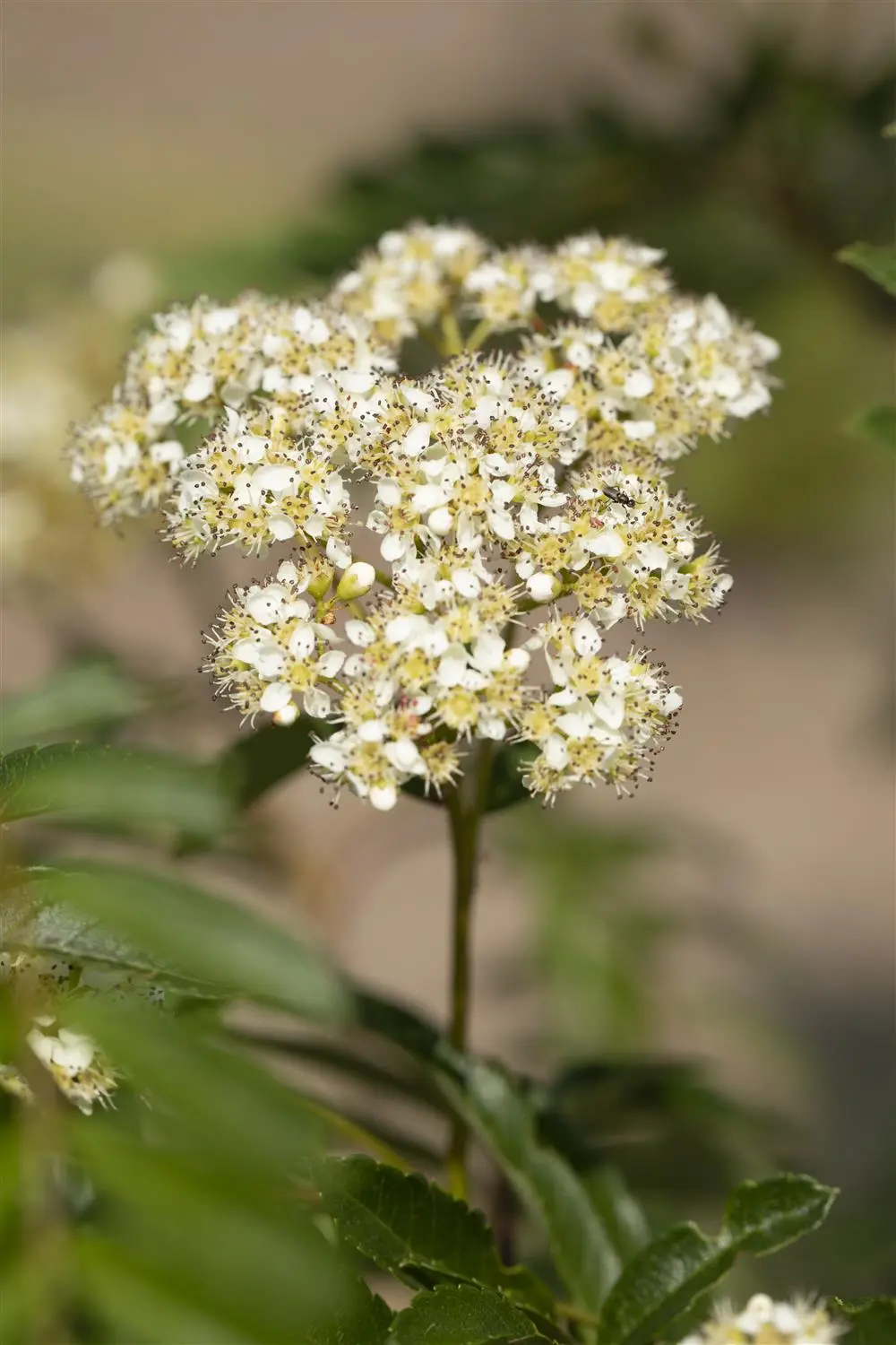 The white flowers of Mountain ash 'Joseph Rock' appear in umbels from May to June.
