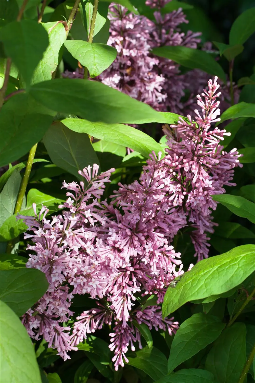 The Lilac 'Minuet' (Syringa x prestoniae) is a bushy, upright, dense large shrub that produces purple flowers arranged in panicles with a strong fragrance. They appear from the end of May to June. The Lilac 'Minuet' also has egg-shaped, medium-green leaves. In a sunny location with well-drained, humus-rich, loose soil, it usually reaches a height of around 4 metres and grows to around 4 metres wide.