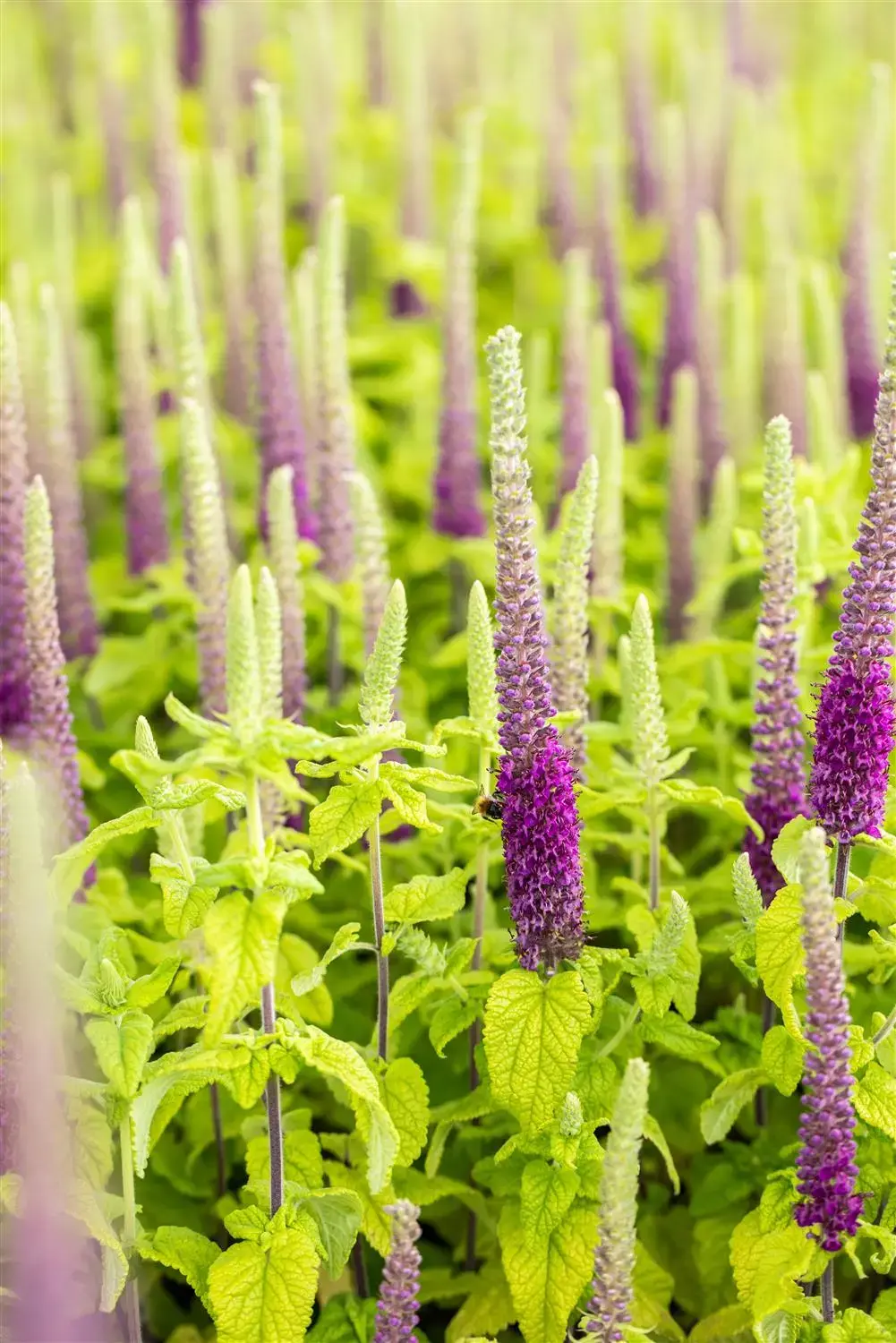 The Germander (Teucrium hyrcanicum) is an upright, clump-forming perennial that produces red flowers arranged in spikes with a pleasant fragrance from June to October. Its egg-shaped, serrated leaves are grey-green. In a sunny to semi-shady location with well-drained, lime-free soil, it usually reaches a height of approx. 60 cm and is approx. 40 cm wide. The Germander is well tolerant of frost.