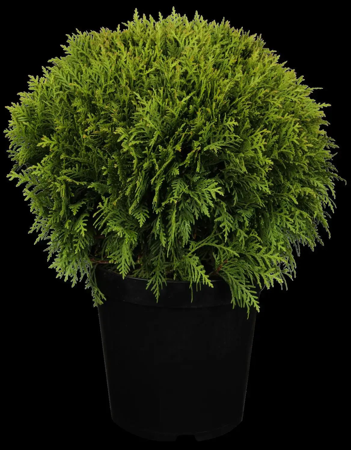 White cedar 'Danica' is a dense and spherical dwarf shrub with an opaque crown. It usually reaches a height of 50 - 60 cm and is approx. 0.8 - 1 m wide. Slow-growing. Usually grows 2 - 5 cm per year.